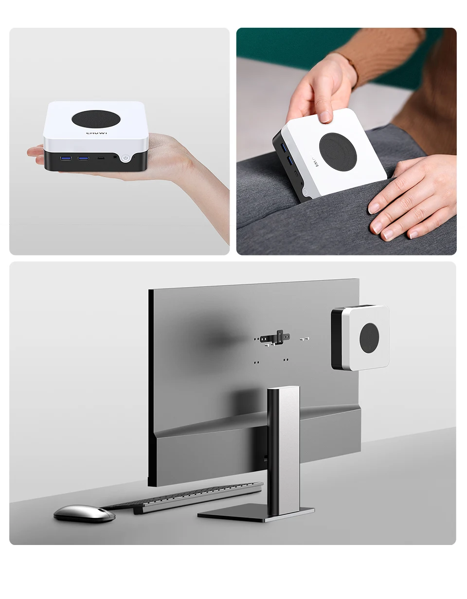 -Esto Intel N100Mini PC mide 12,7x12,7x4,9 cm y pesa 400g, Ligero y portátil, por lo que es fácil de poner en la bolsa en cualquier momento.