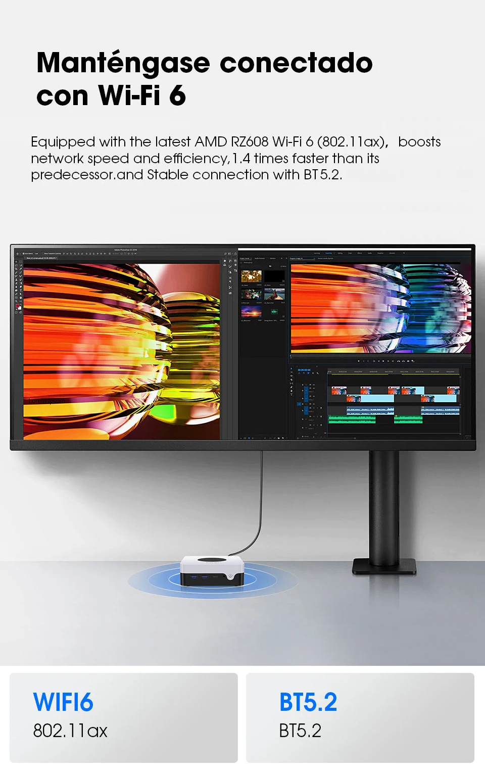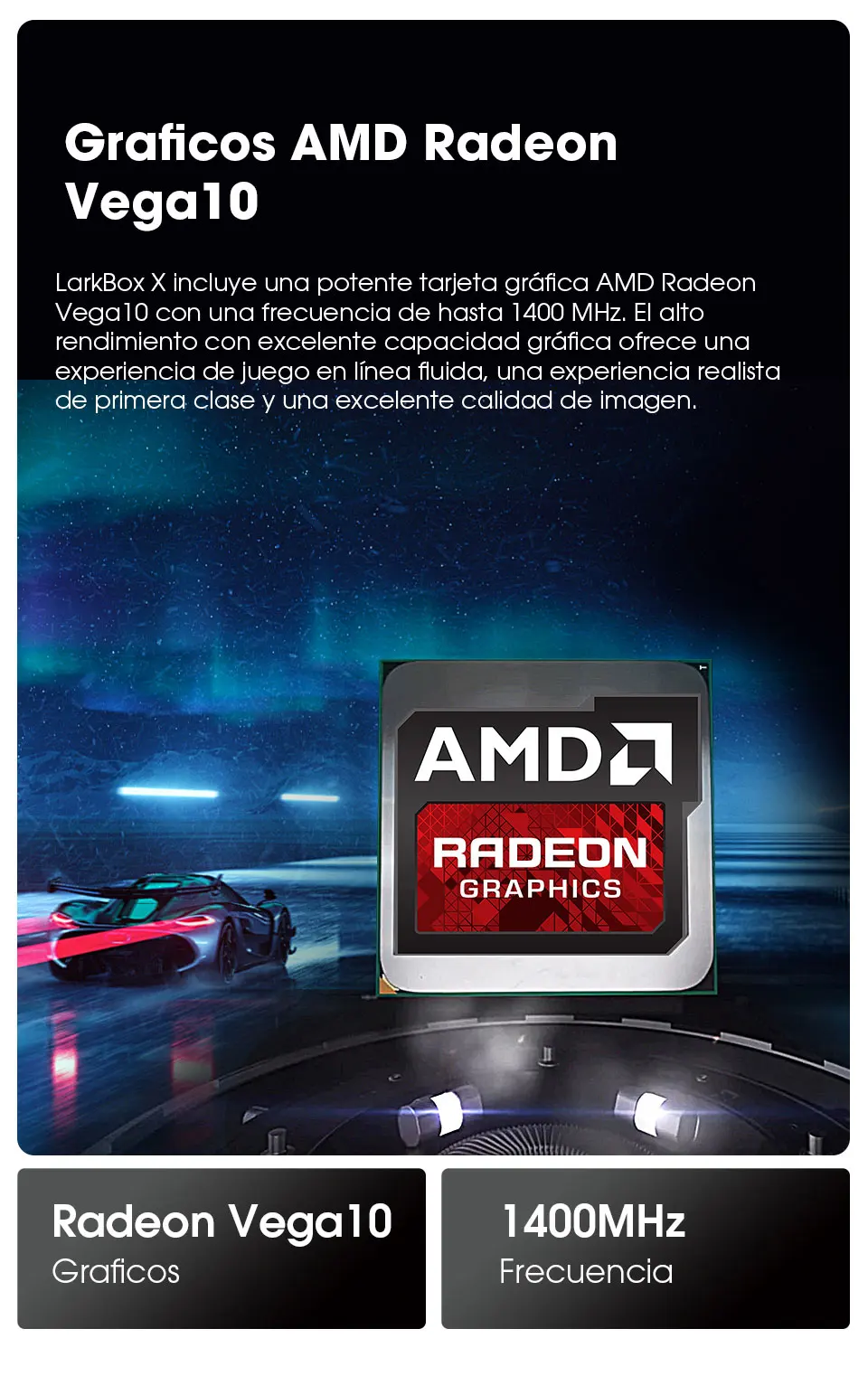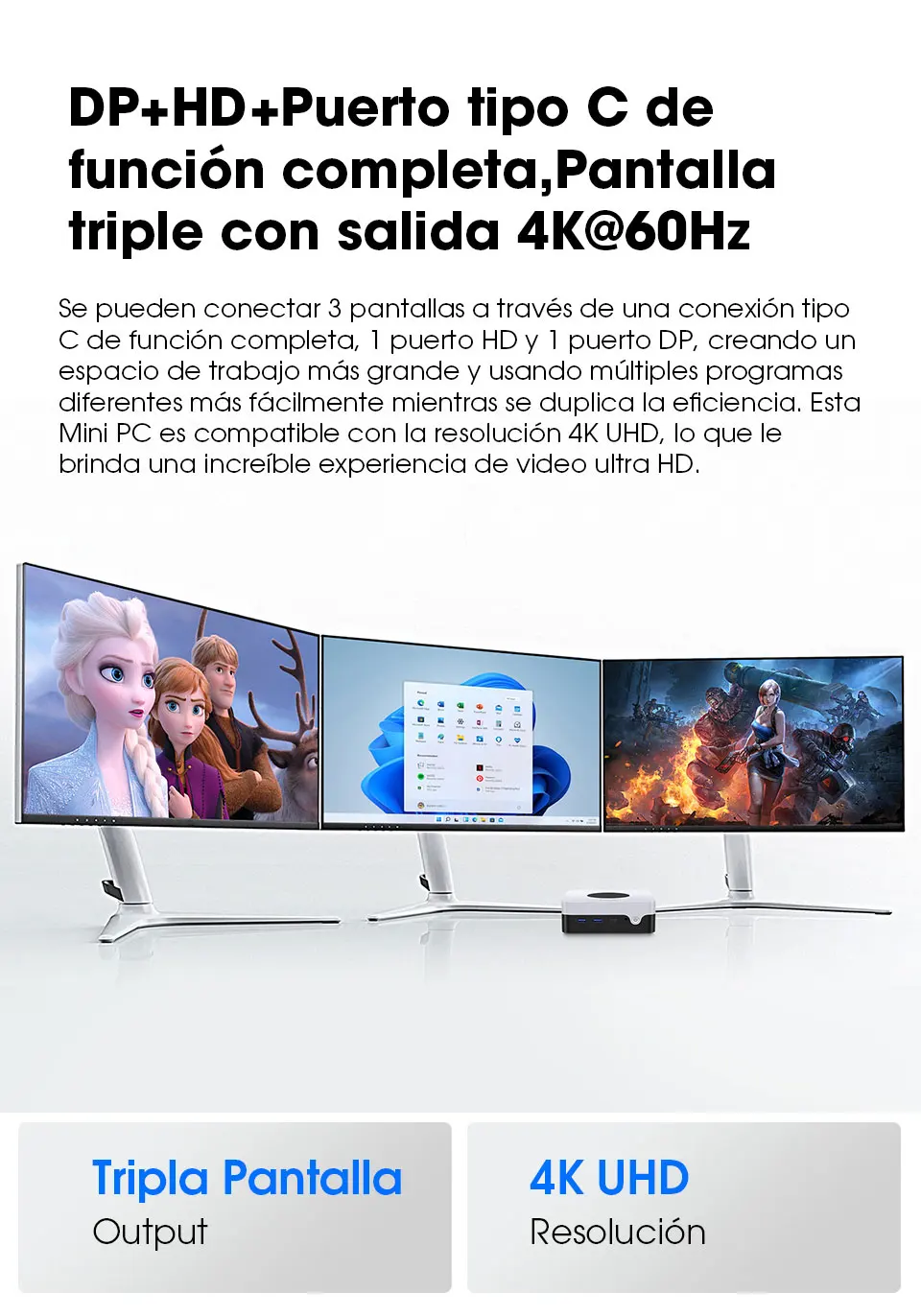 -Soporte de pantalla Triple 4K. El pc para juegos tiene un AMD potente.Gráficos Radeon Vega10Con una frecuencia de hasta 1400MHz, funciona como streamer multimedia 4K, servidor multimedia doméstico, juegos en línea, edición de fotos, servidores pequeños, etc.