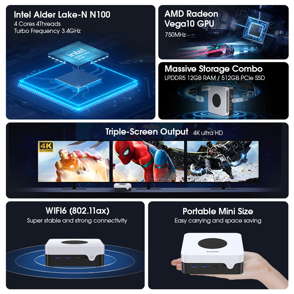 Comprar CHUWI-Mini PC LarkBox X, Intel N100, gráficos UHD para procesadores Intel de 12ª generación, 12GB de RAM, 512GB SSD, WiFi 6, ordenador de escritorio