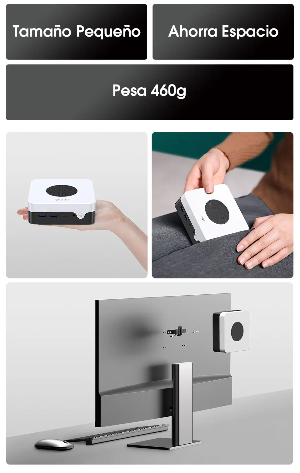 -Este mini pc AMD mide 12,7x12,7x4,9 cm y pesa.460gLigero y portátil, por lo que es fácil de poner en la bolsa en cualquier momento.