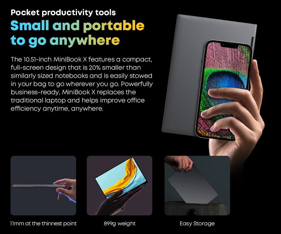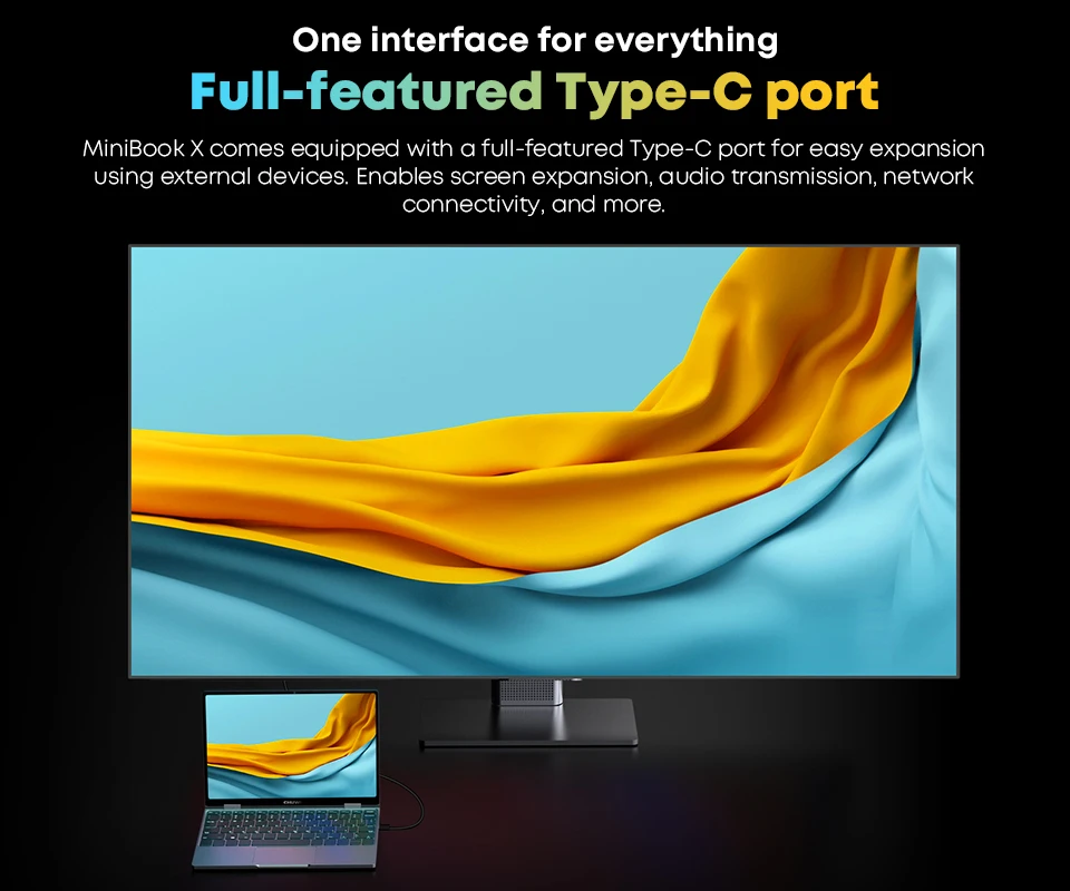 MiniBook X comes equipped with a full-featured Type-C port for easy expansion
