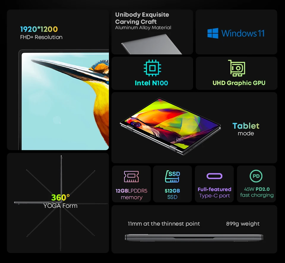 El MiniBook X viene con sistema operativo Windows 11 con un diseño Ul rediseñado intuitivamente. Nueva interacción táctil y soporte nativo de Android para aplicaciones móviles y juegos populares.