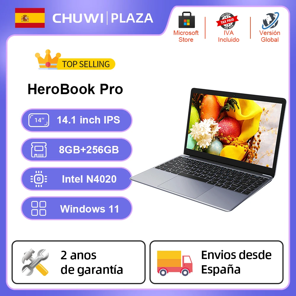 Comprar CHUWI-ordenador portátil HeroBook Pro FHD, pantalla de 14,1 pulgadas, Intel Celeron N4020 Dual Core UHD Graphics 600 GPU 8GB RAM 256GB SSD Windows 11
