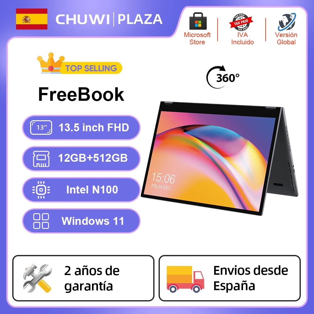 Comprar CHUWI-Tableta portátil FreeBook de 360 °, dispositivo con pantalla táctil FHD de 13,5 pulgadas, Windows 11, Intel N100, cuatro núcleos, LPDDR5 12GB, 512G, SSD, WIFI6