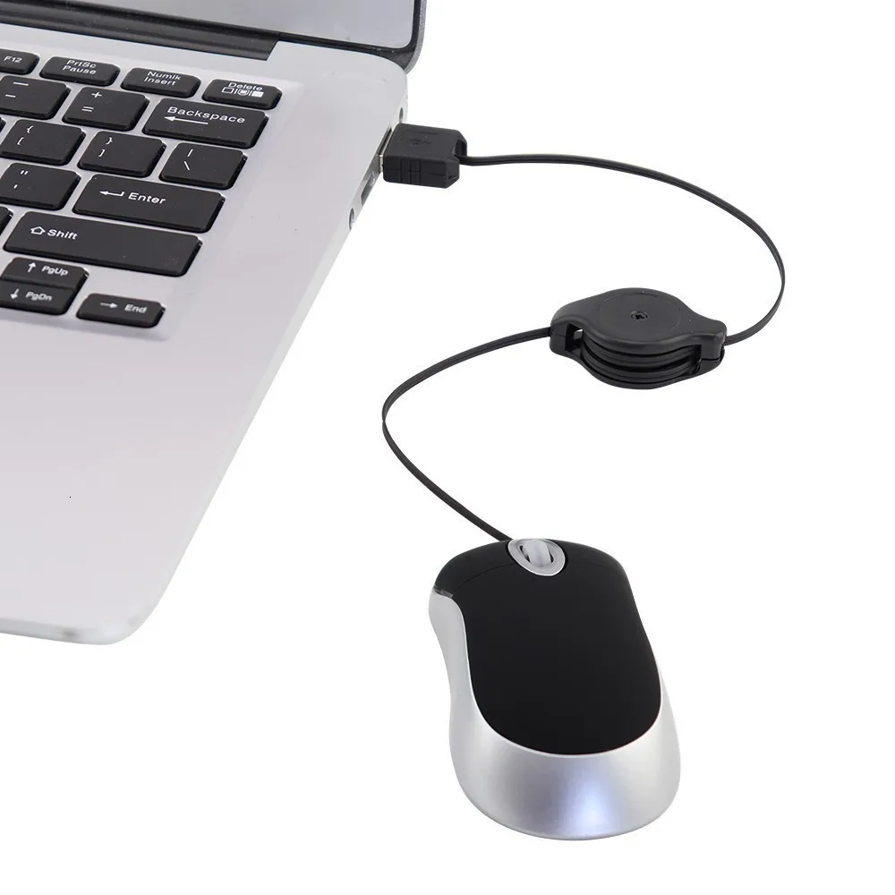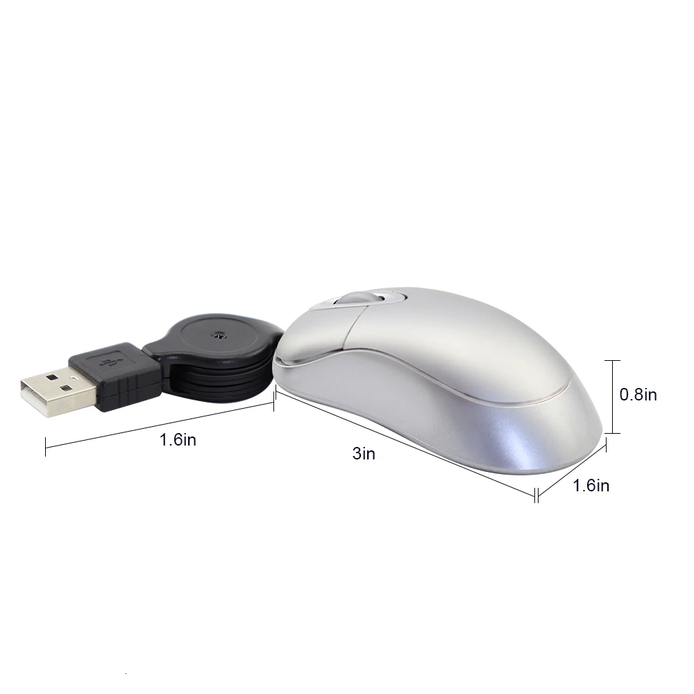 Comprar CHUYI-ratón óptico retráctil con cable USB para niños, Mini ordenador de 1600 DPI, portátil de mano pequeña 3D para PC, portátil y Notebook