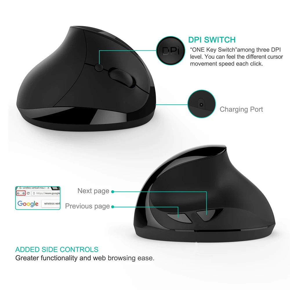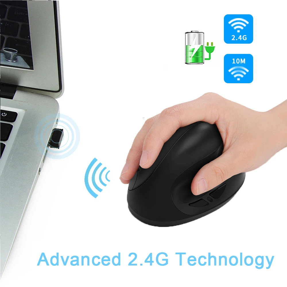 USB 2.4 GHz wireless vertical mouse, comfortable touch.