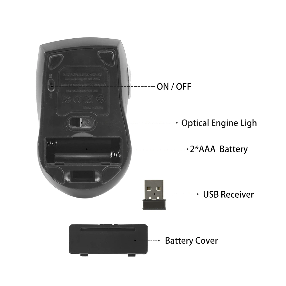 Comprar CHYI-ratón óptico inalámbrico para ordenador, dispositivo con 6 botones, 2,4G, USB, 800/1200/1600 DPI, para oficina, PC, portátil y Notebook