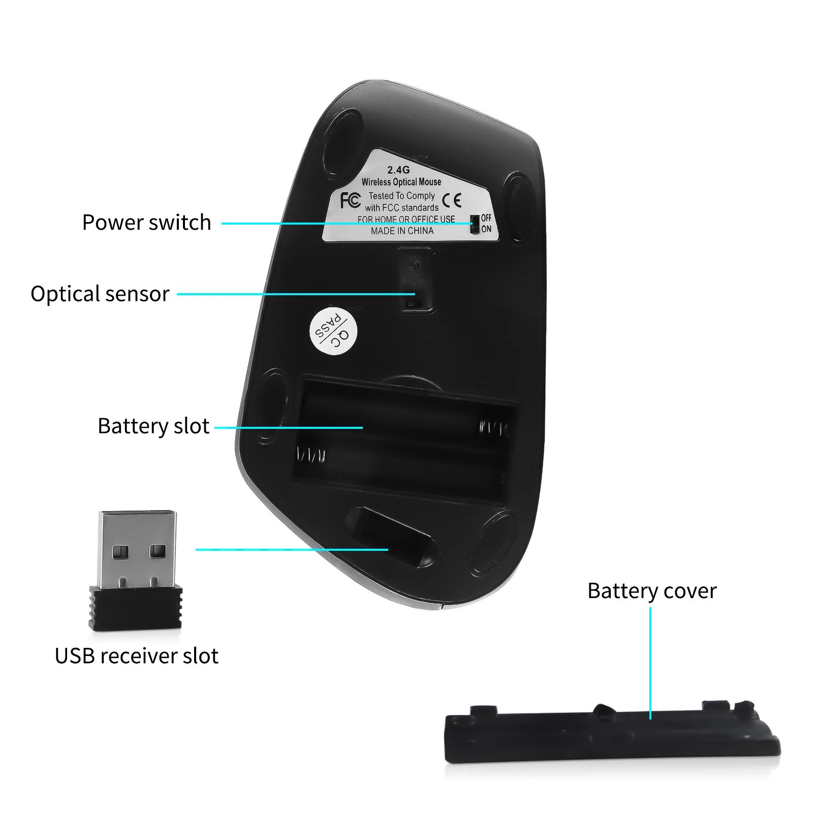 * Ratón Plug and Play con receptor USB, fácil de usar con la función de configuración estándar.