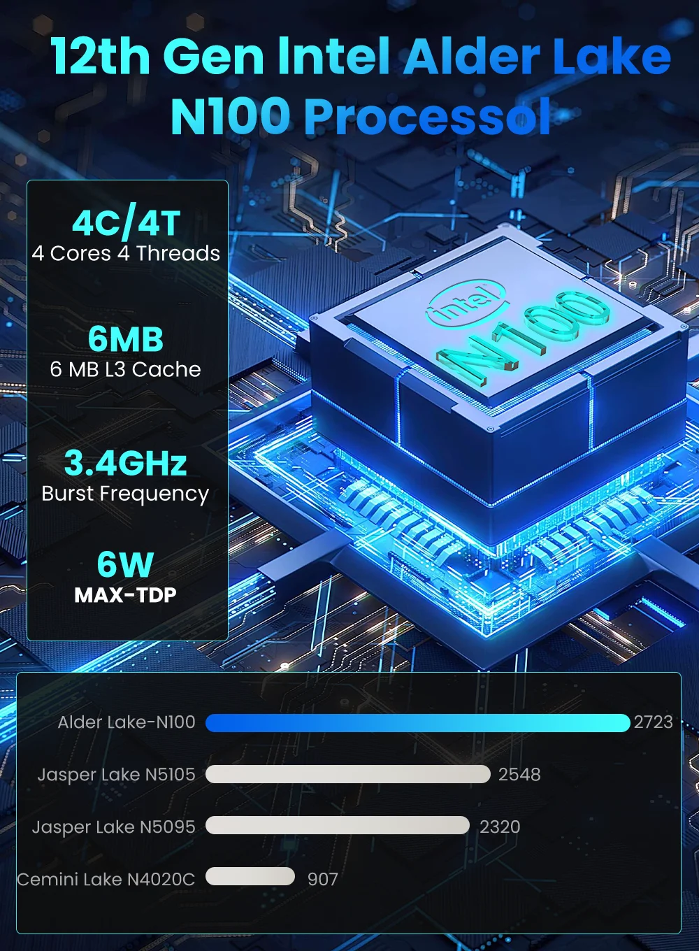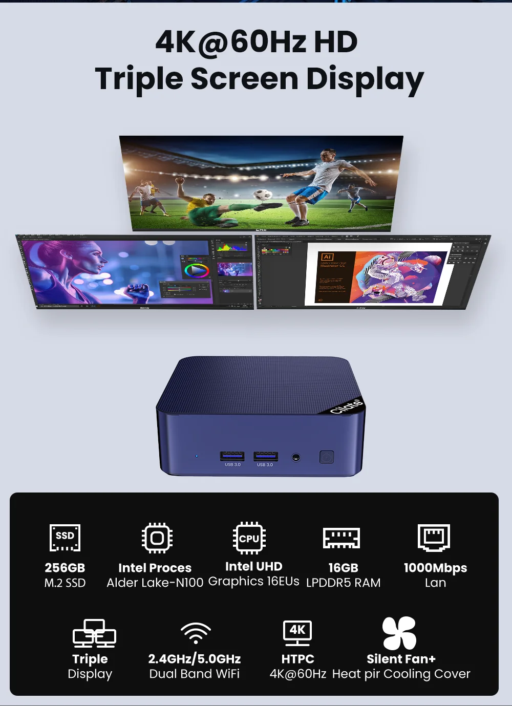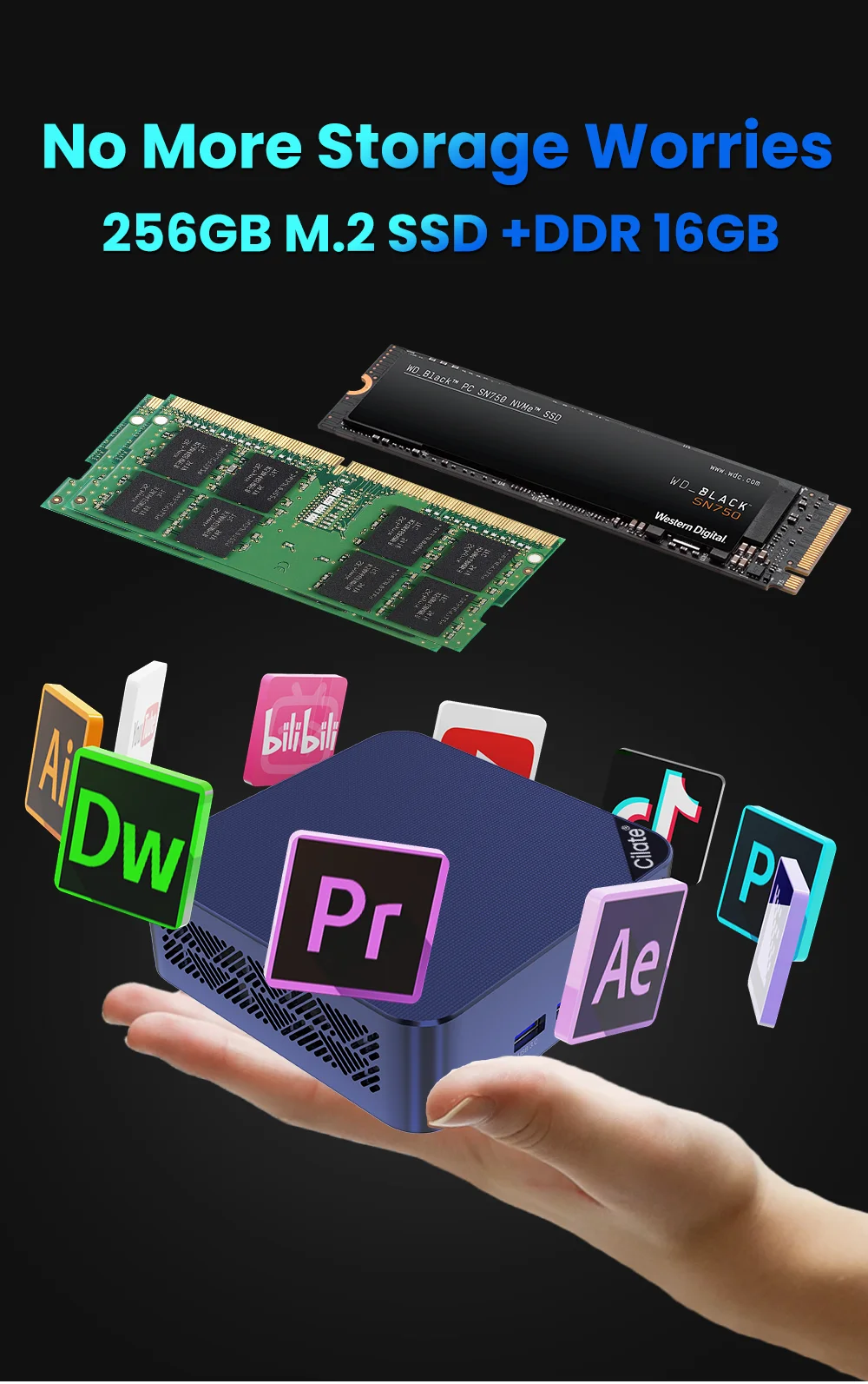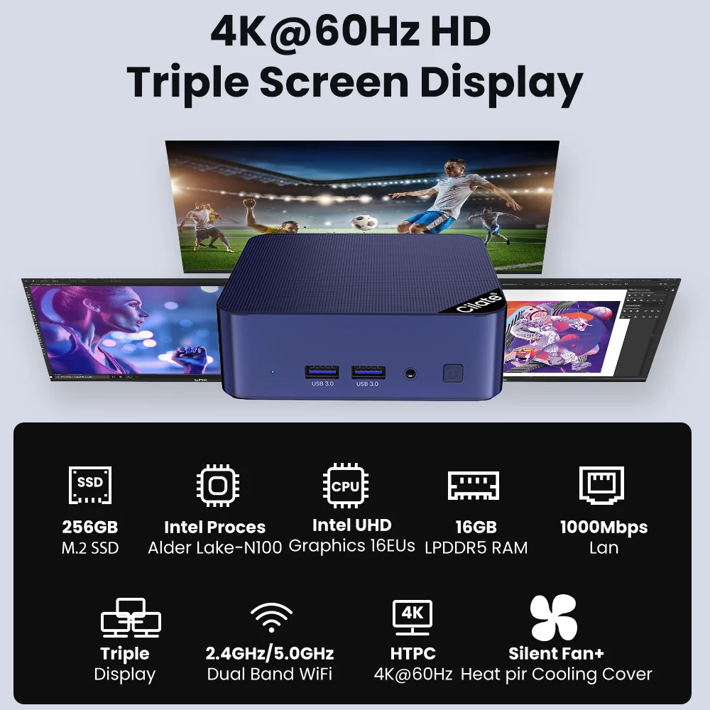 Comprar Cilate-Mini PC Intel Celeron N100, ordenador de escritorio para juegos, DDR4, 8GB, 16GB, SSD, 256GB, 512GB, WIFI5, BT4.2, windows 11