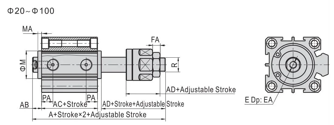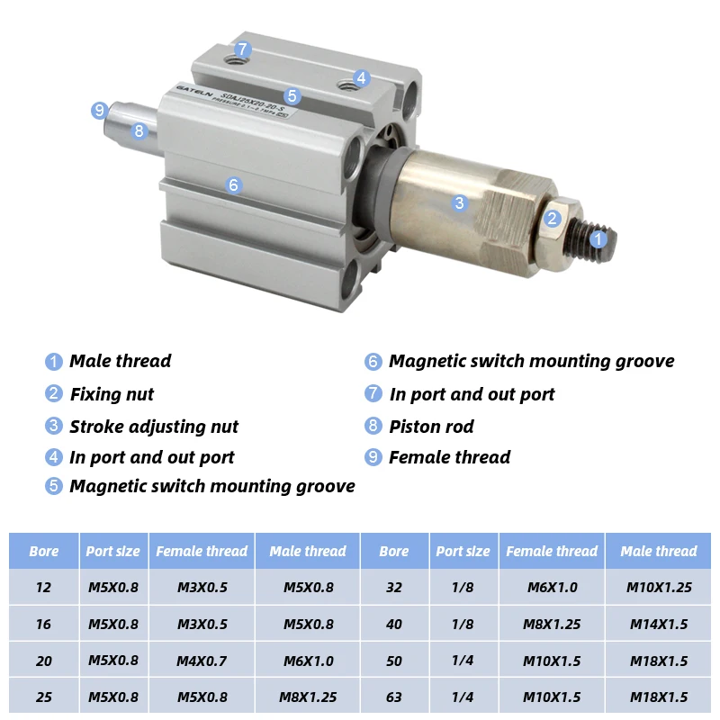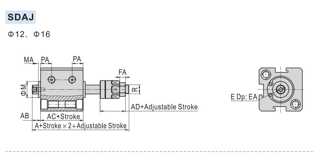 Cilindro de aire compacto de carrera ajustable serie SDAJ16 de doble efecto SDAJ16x20-20S SDAJ16X30-20S-B SDAJ16X40-30
