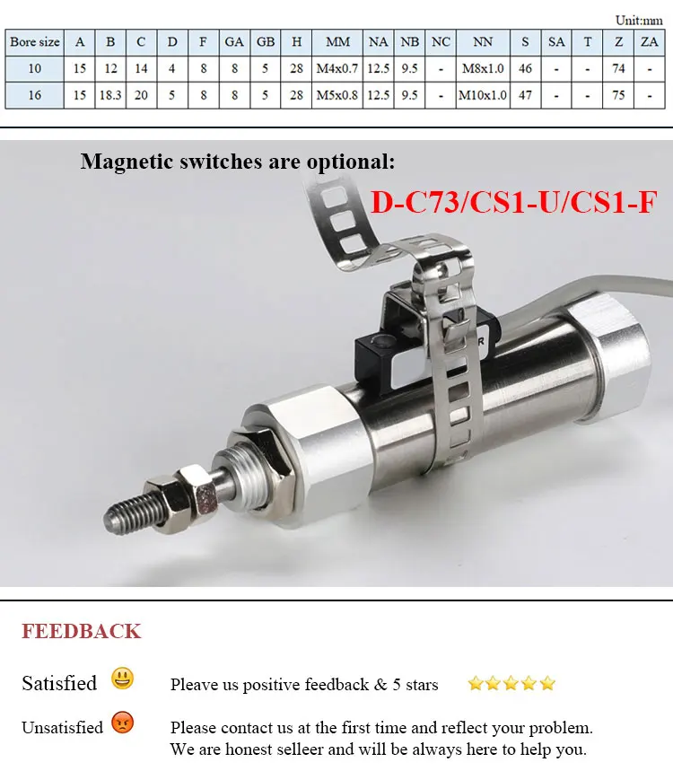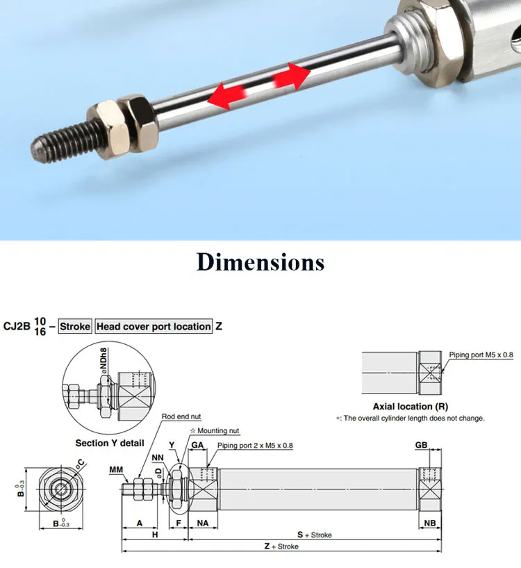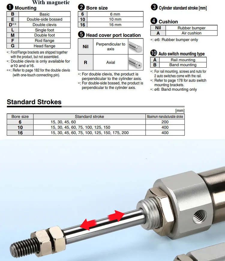 Carrera: 5/10/15/20/25/30/35/40/50/75/100/125/150/175/200 mm