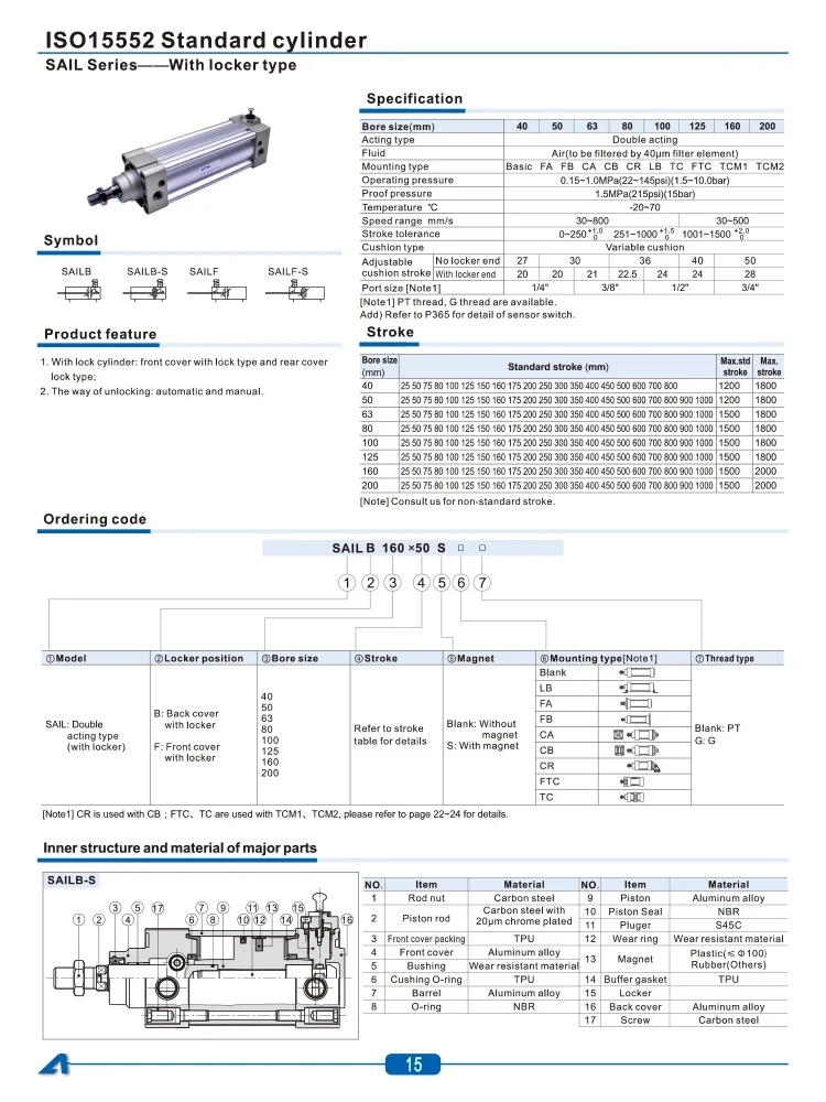 Cilindro estándar luft zylinder SAI 32 40 serie estándar doppelt mendender pneumatik cilindro sai32 SAI40-25 50 75 10