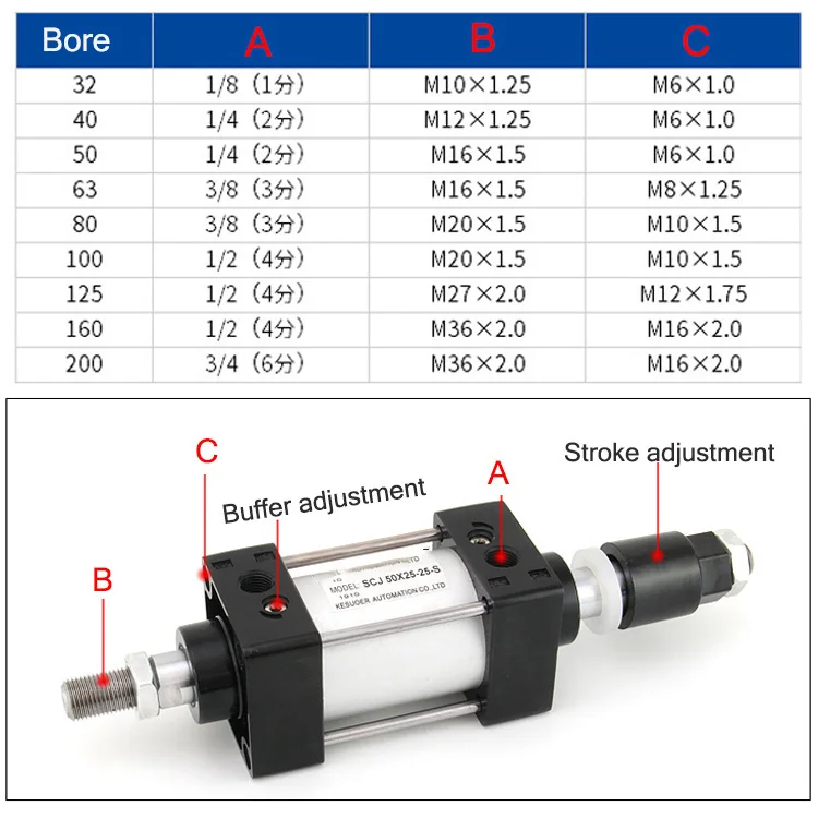 Cilindro estándar SCJ SC32/40/50/63/80/125mm, herramientas de cilindro neumático de aire de diámetro, pistón de empuje grande, carrera de 25/50/75/100/200/500mm