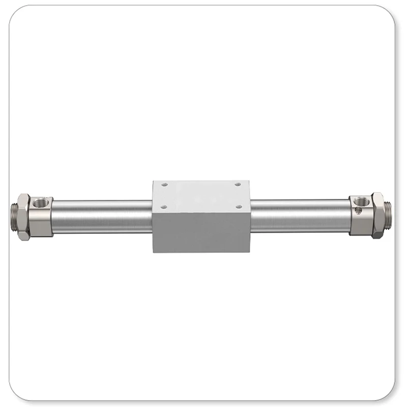 1.Cilindro sin vástago acoplado magnéticamente, no hay conexión mecánica entre el pistón y el control deslizante, y el rendimiento de sellado es excelente.
