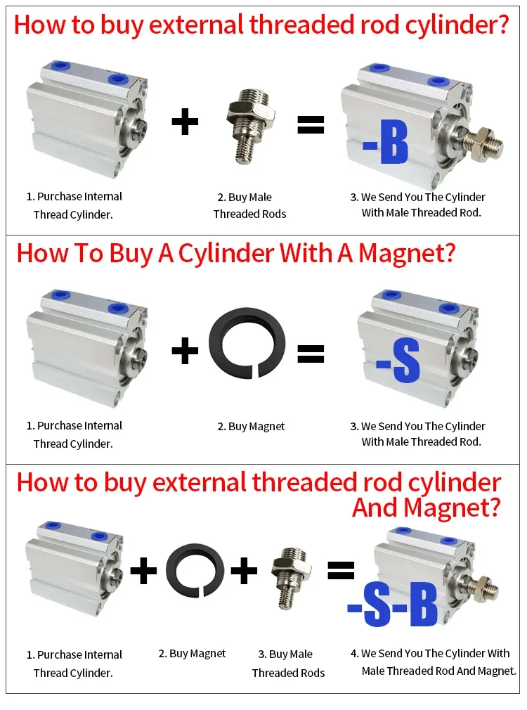3. Excelente anillo de sellado: anillo de sellado con un excelente, el cilindro de aire es de alta eficiencia para evitar fugas del pistón, mejorando el rendimiento de sellado.