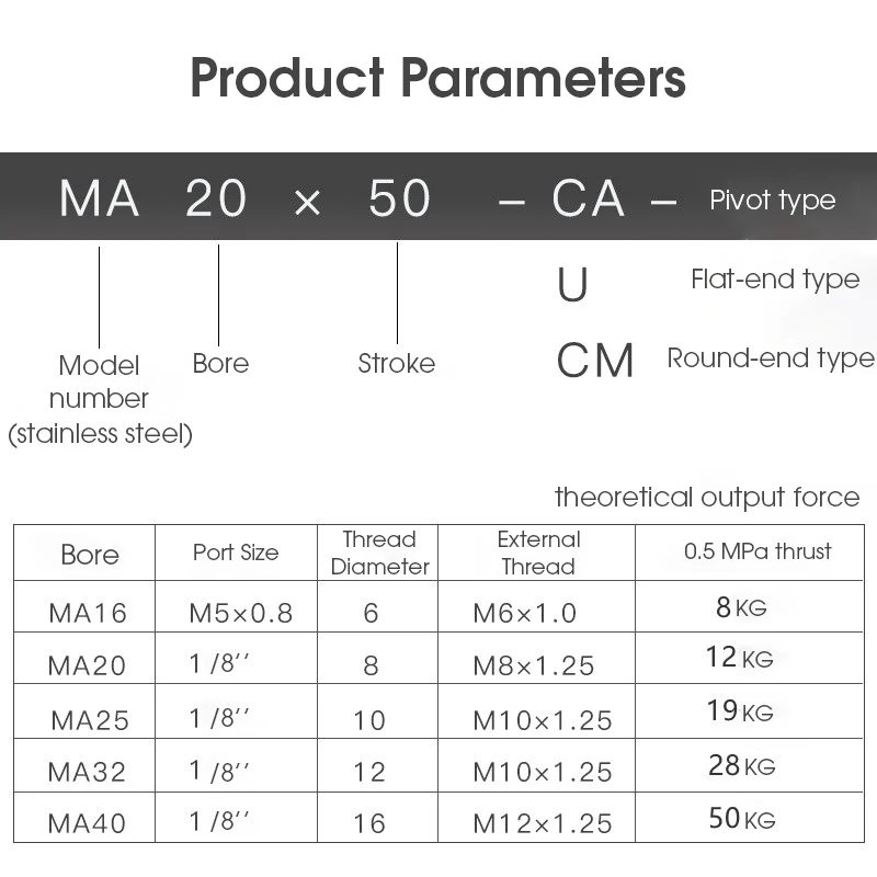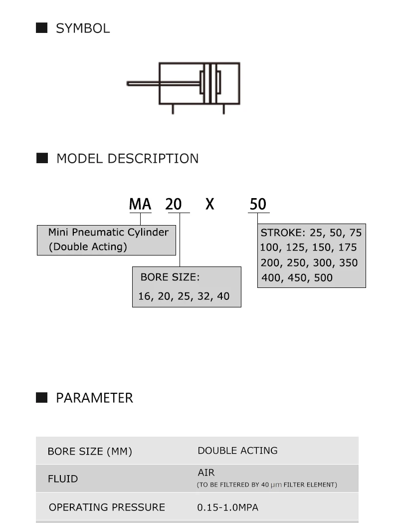 Stroke: 25mm 50mm 75mm 100mm 125mm 150mm 175mm 200mm 250mm 300mm 400mm 500mm