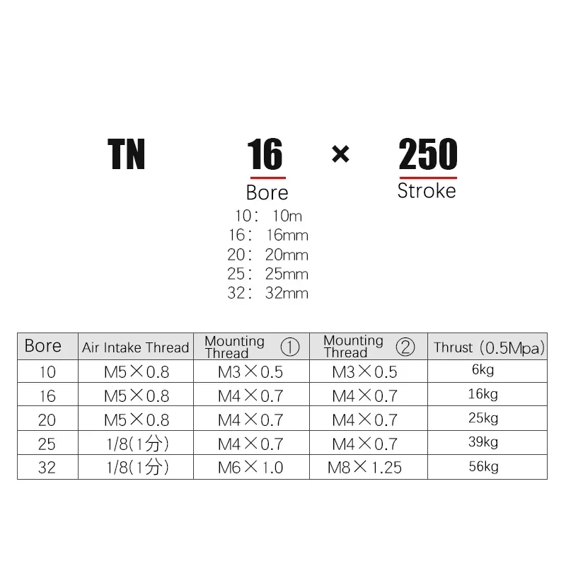 Cilindro neumático de doble varilla TN 10 16 20 25 32mm carrera de aleación de aluminio 200 250 300 350 400 450mm cilindro de aire