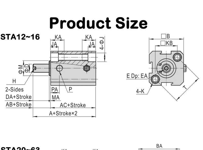 Cilindro neumático tipo STA de alta calidad, cilindro de un solo efecto, resorte de presión STA20/25/32/40X55/60/65/70/75/80/100