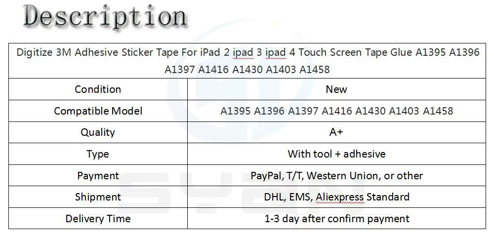 Comprar Cinta adhesiva Digitize 3M para iPad 2, ipad 3, ipad 4, cinta adhesiva para pantalla táctil, A1395, A1396, A1397, A1416, A1430, A1403, A1458