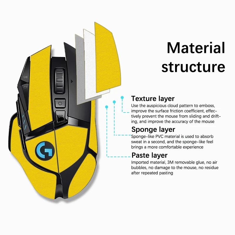 Comprar Cinta de agarre para ratón resistente a la suciedad, hecha a mano para patín pegatina, antideslizante, succiona el sudor, para Logitech G502 sin ratón