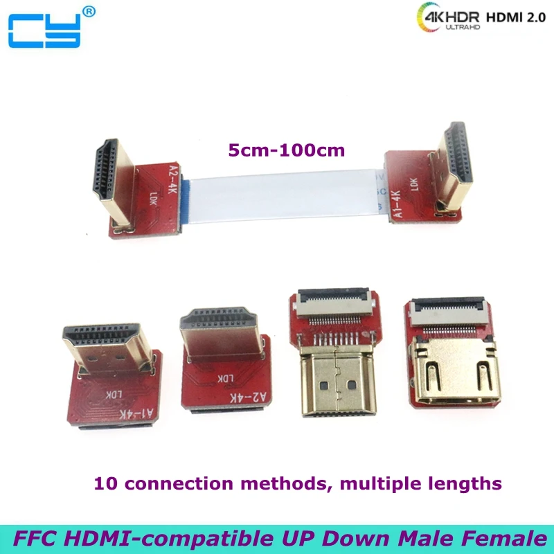 Comprar Cinta antiinterferencias FPV 4K 60HZ Compatible con HDMI macho a hembra conector arriba abajo Cable plano Flexible Raspberry Pi 4