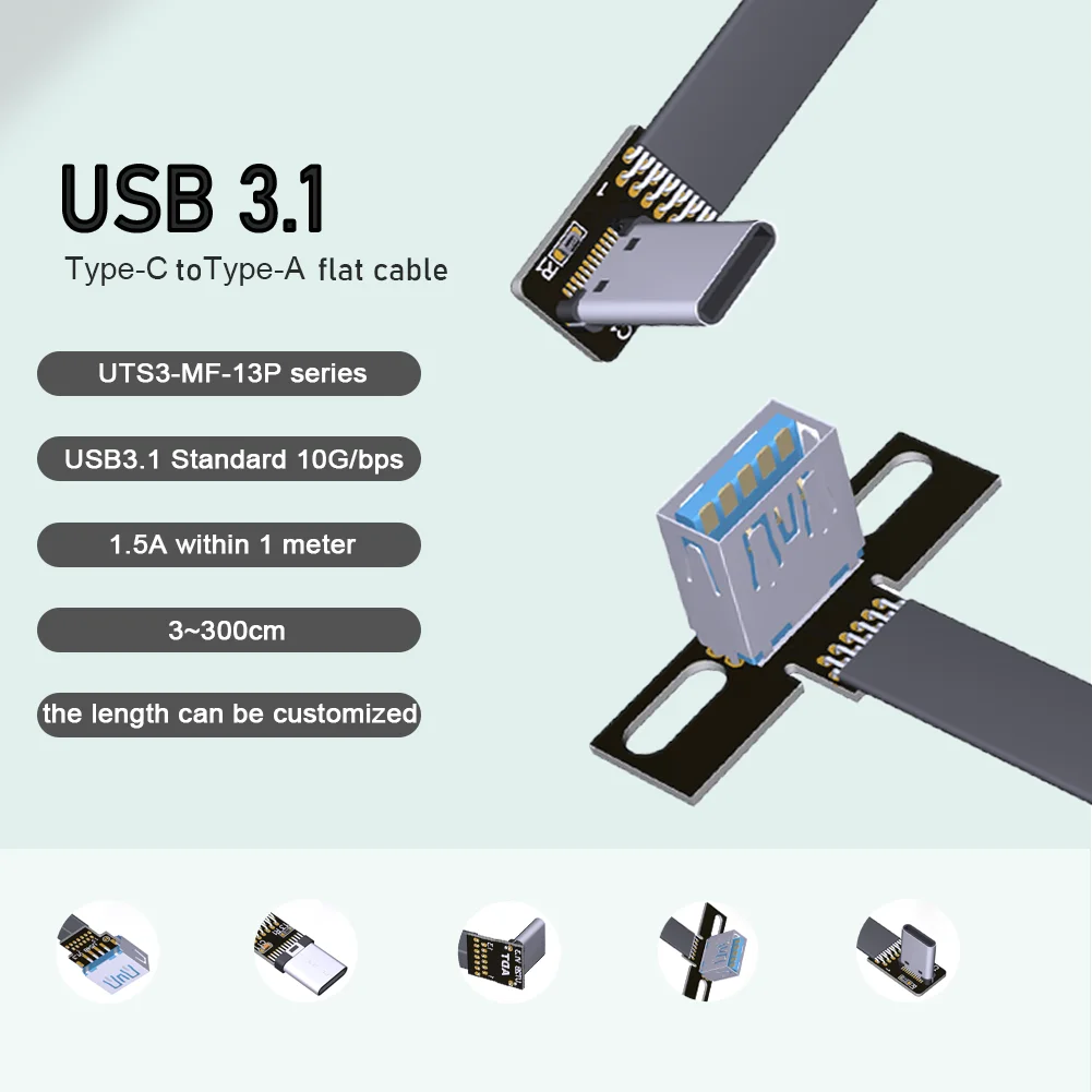 Comprar Cinta de Cable USB tipo A hembra A USB C, Cable plano FPV, ángulo arriba abajo, USB 3,0, Cable de datos de carga rápida 3A