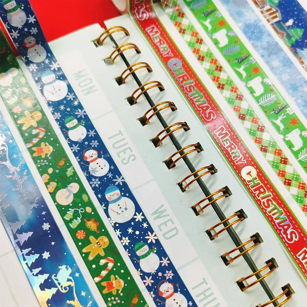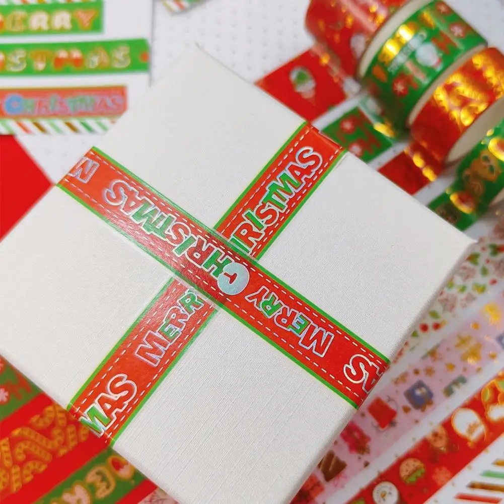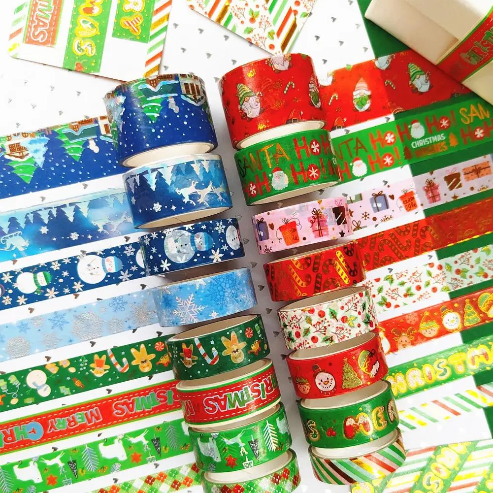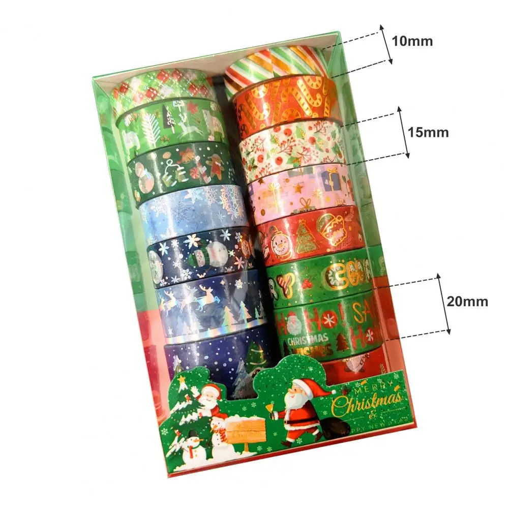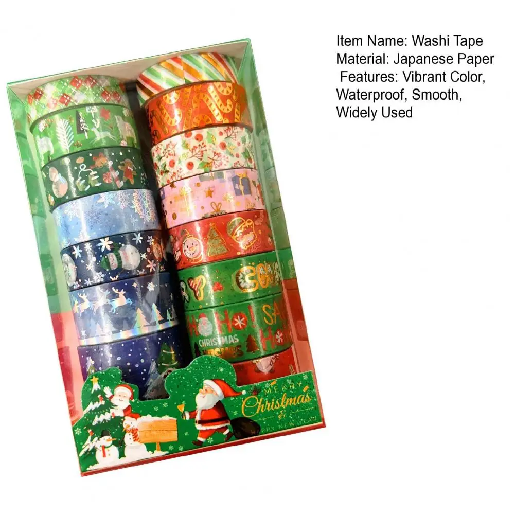 Cinta decorativa vibrante Navidad Washi Tape decoración festiva para envolver regalos con patrones exquisitos álbum de recortes impermeable para Diy