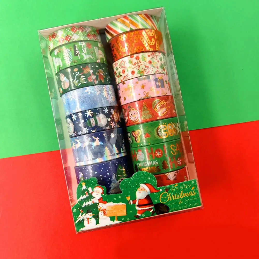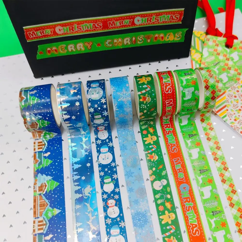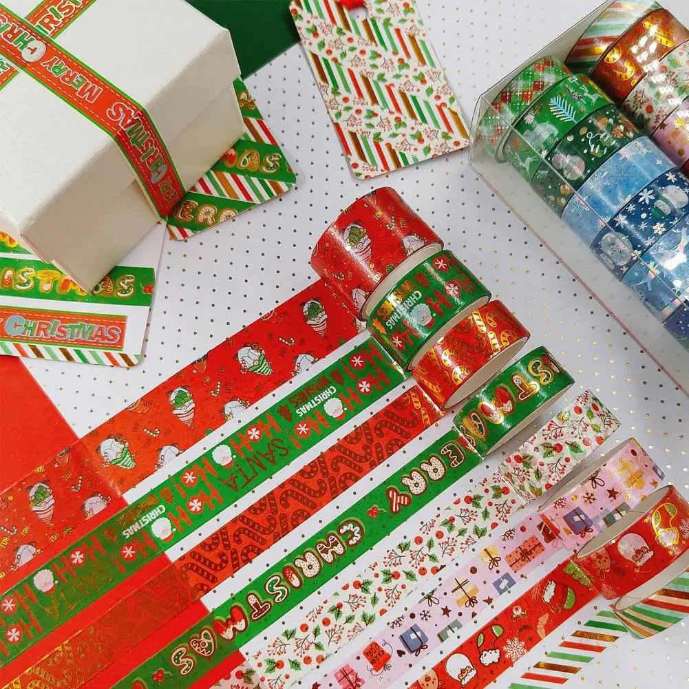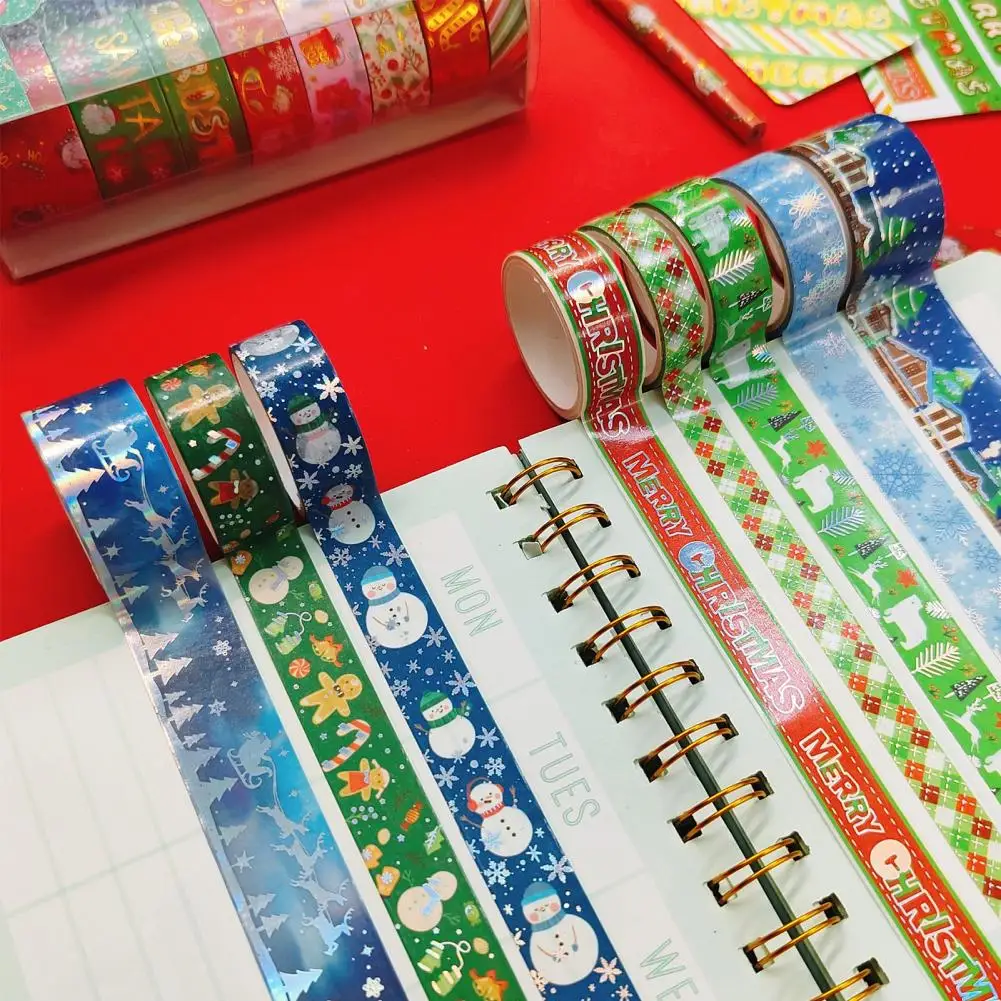 Cinta decorativa vibrante Navidad Washi Tape decoración festiva para envolver regalos con patrones exquisitos álbum de recortes impermeable para Diy