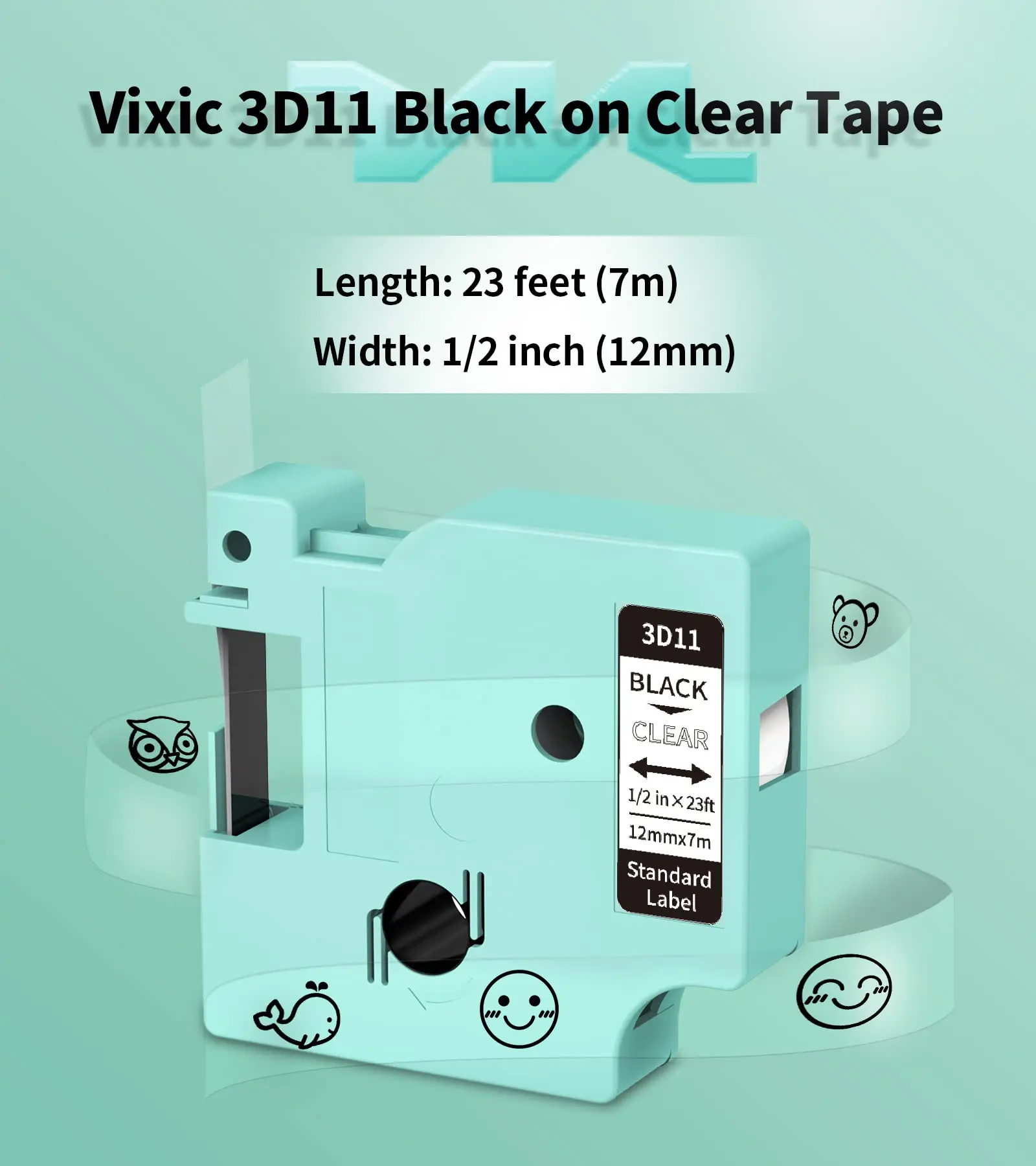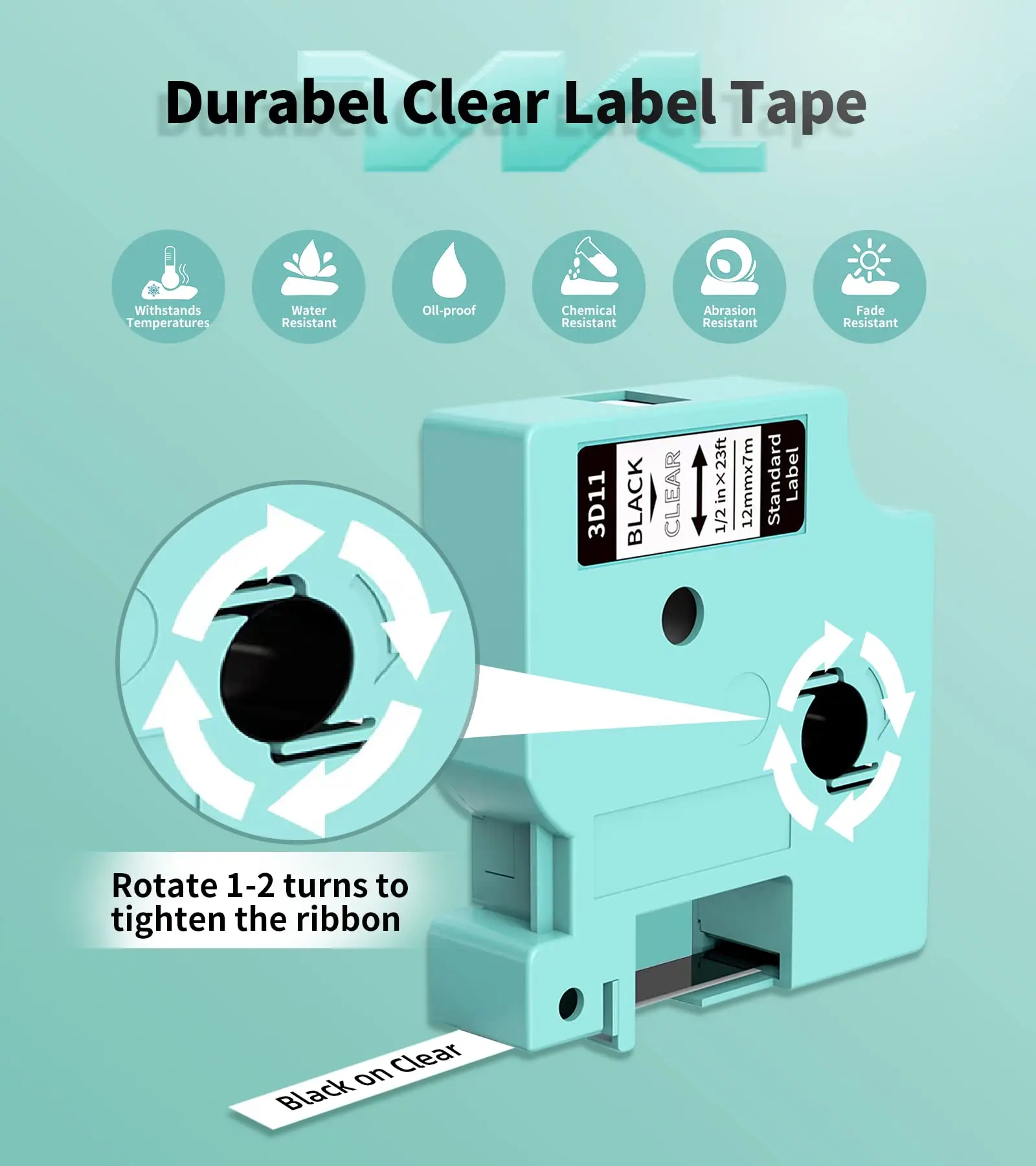 Comprar Cinta de etiquetas 3D11 negra y transparente, Compatible con DYMO D1, A45010, DYMO LabelManager 160, Phomemo D1600, D1600D, 6 uds.