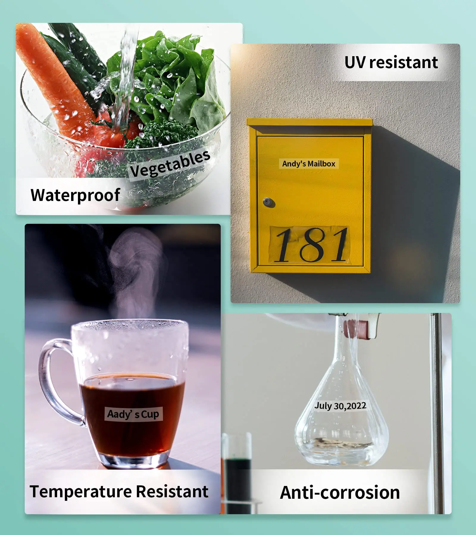 Ampliamente utilizado:Úselo para cualquier cosa que se pueda etiquetar, como tazas, jarrones, cosméticos, gabinetes, cuadernos, juguetes, tarros de condimentos, artículos personales, interruptores de luz, contenedores, macetas, documentos, carpetas, estantes, libros, accesorios, etc. También es adecuado para muchos lugares al aire libre y algunos lugares industriales, almacenes, Laboratorios químicos, escuelas, hoteles y hospitales, etc. Las etiquetas hacen que su vida y su trabajo sean más eficientes, organizados y ordenados