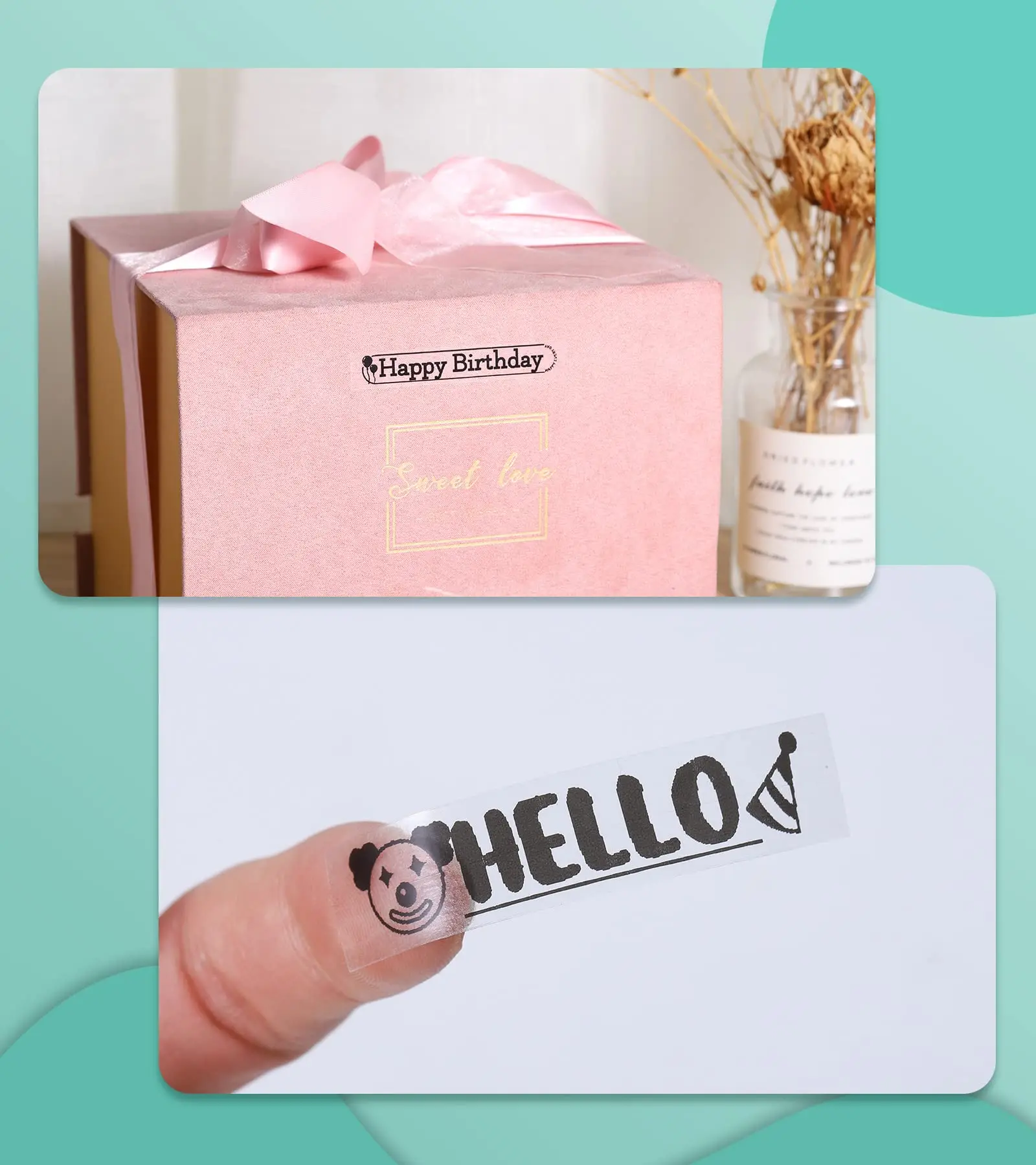 Contenido del paquete:Cintas de etiquetas D11 x 6, cinta negra sobre transparente, 1/2 pulgadas x 23 pies (12mm x 7m) cada una. Embalaje único, carcasa verde, vibrante y elegante, diseño especial solo para ti