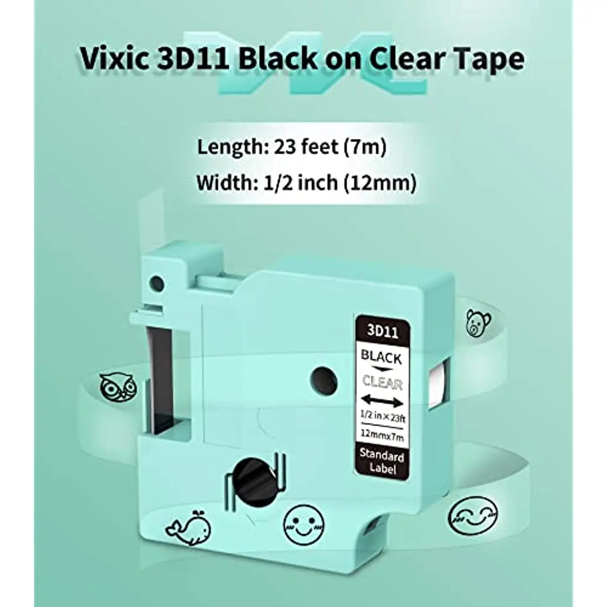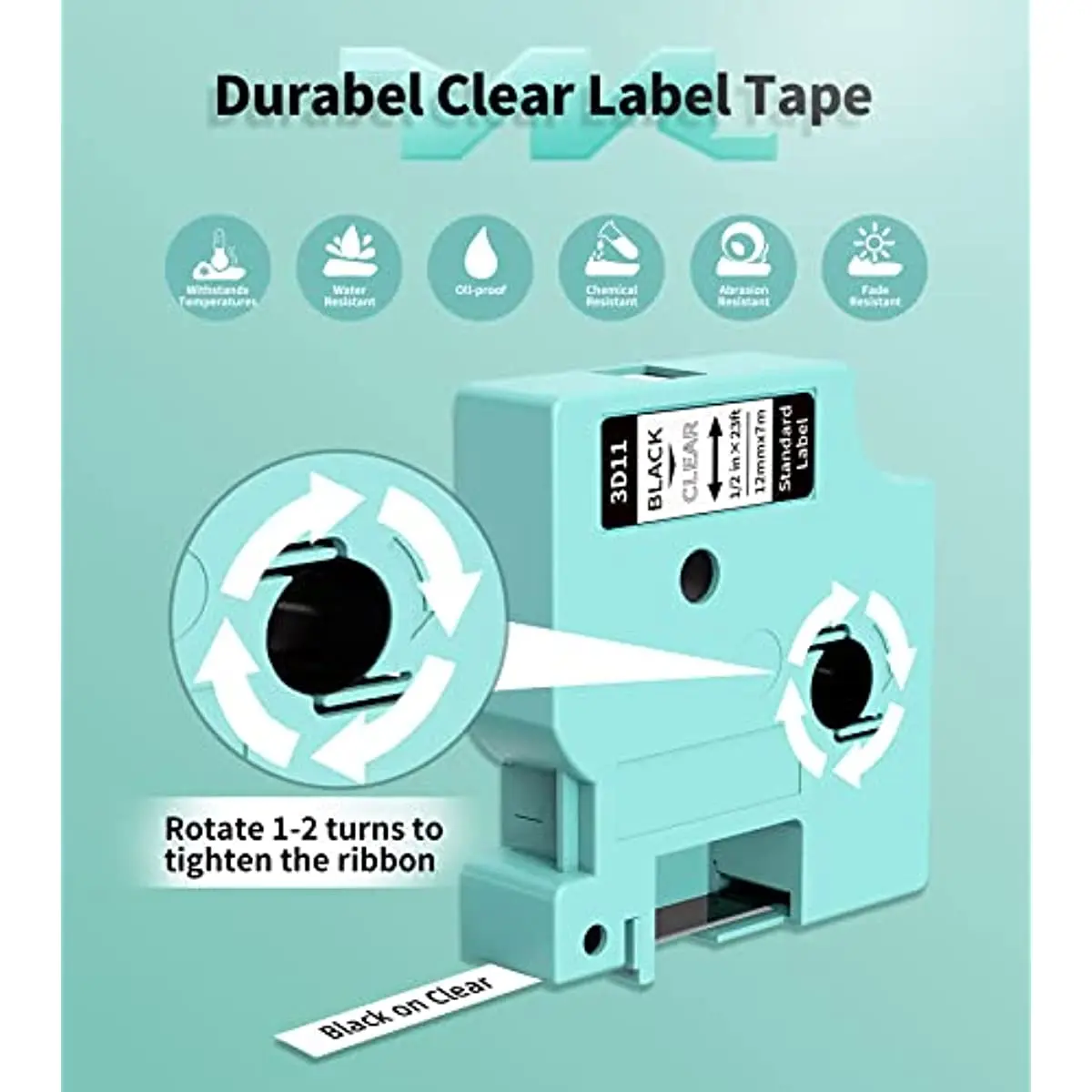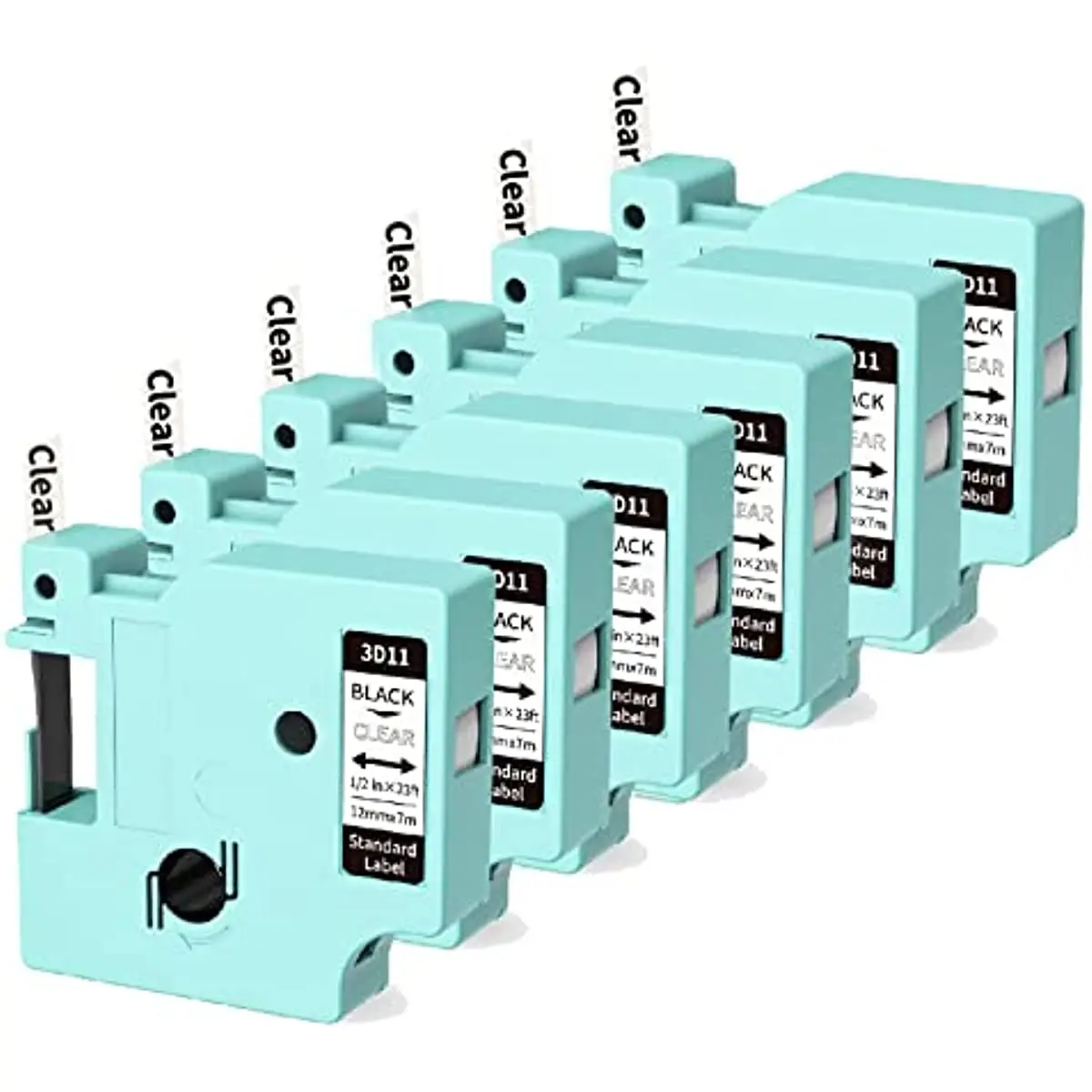 Comprar Cinta de etiquetas 3D11 negra y transparente, Compatible con DYMO D1, A45010, DYMO LabelManager 160, Phomemo D1600, D1600D, 6 uds.