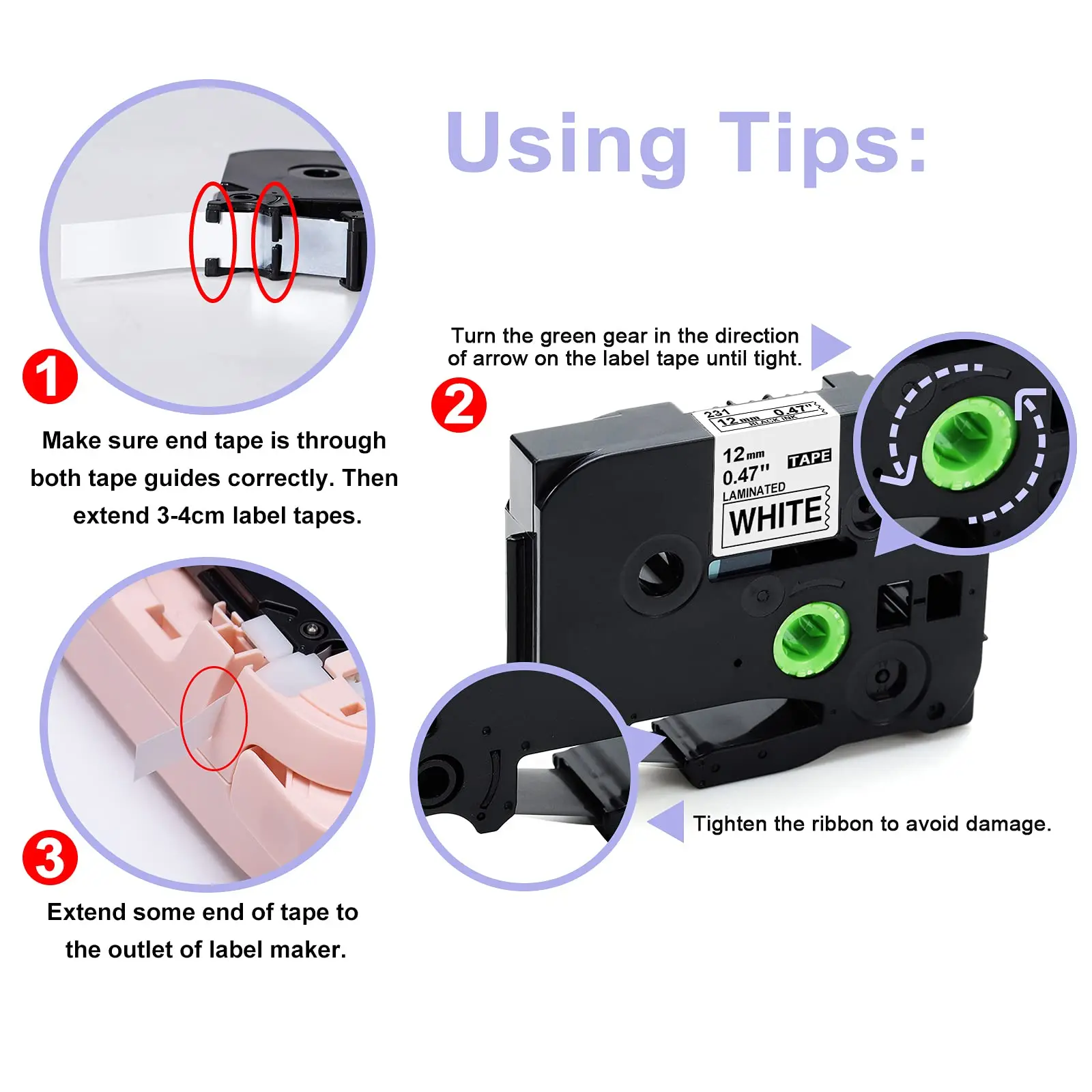 Standard Laminated Tape:Easy to Peal, Printing Clearly, Waterproof, Strong Adhesive, High Temperature Resistance, Fading Resistant, Anti-corrosion