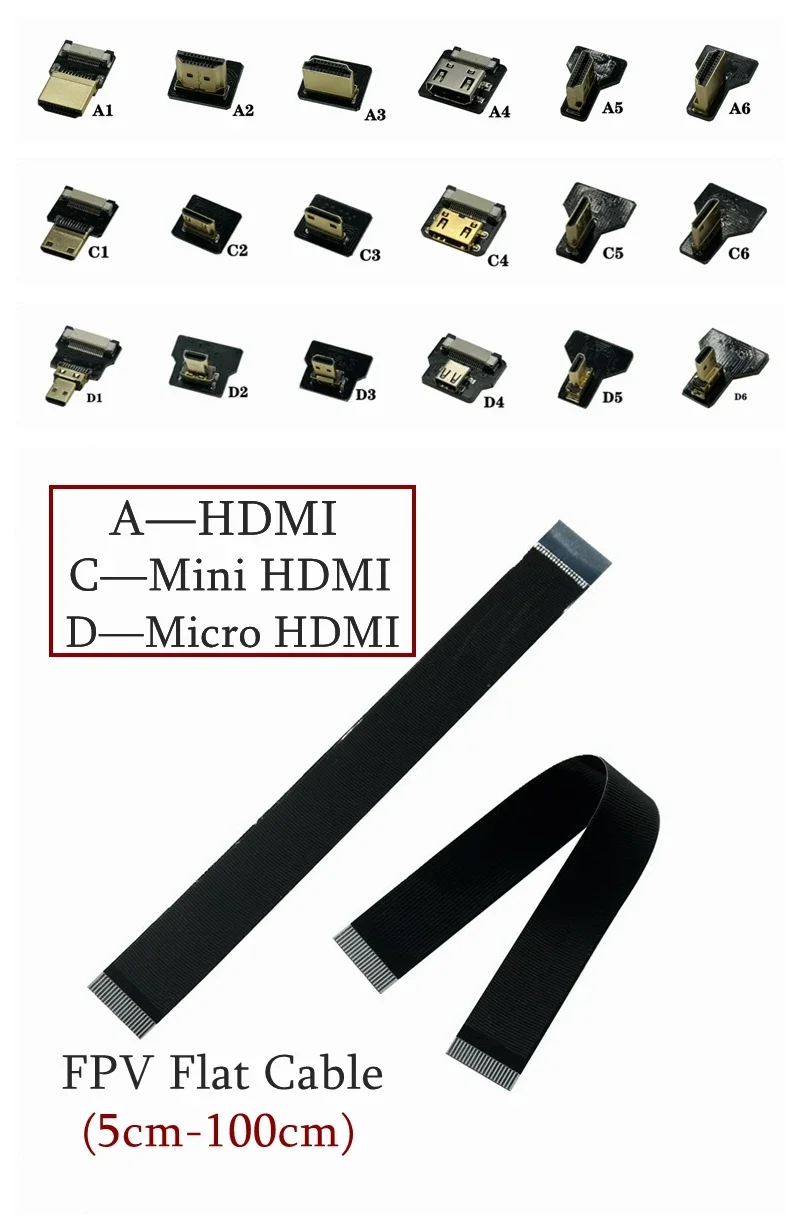 Conector de Cable de cinta HDMI ultrafino compatible con HDMI Raspberry Pi 4 Micro HDMI a HDMI/Mini HDMI hembra Flexible FPV HDMI Cable plano 90 grados FFC 20pin