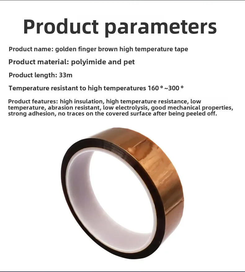 Cinta Kaptons de 3/5/8/10/15/20/25/30mm, cinta adhesiva de poliimida de alta temperatura resistente al calor de 33M, aislamiento para electrónica