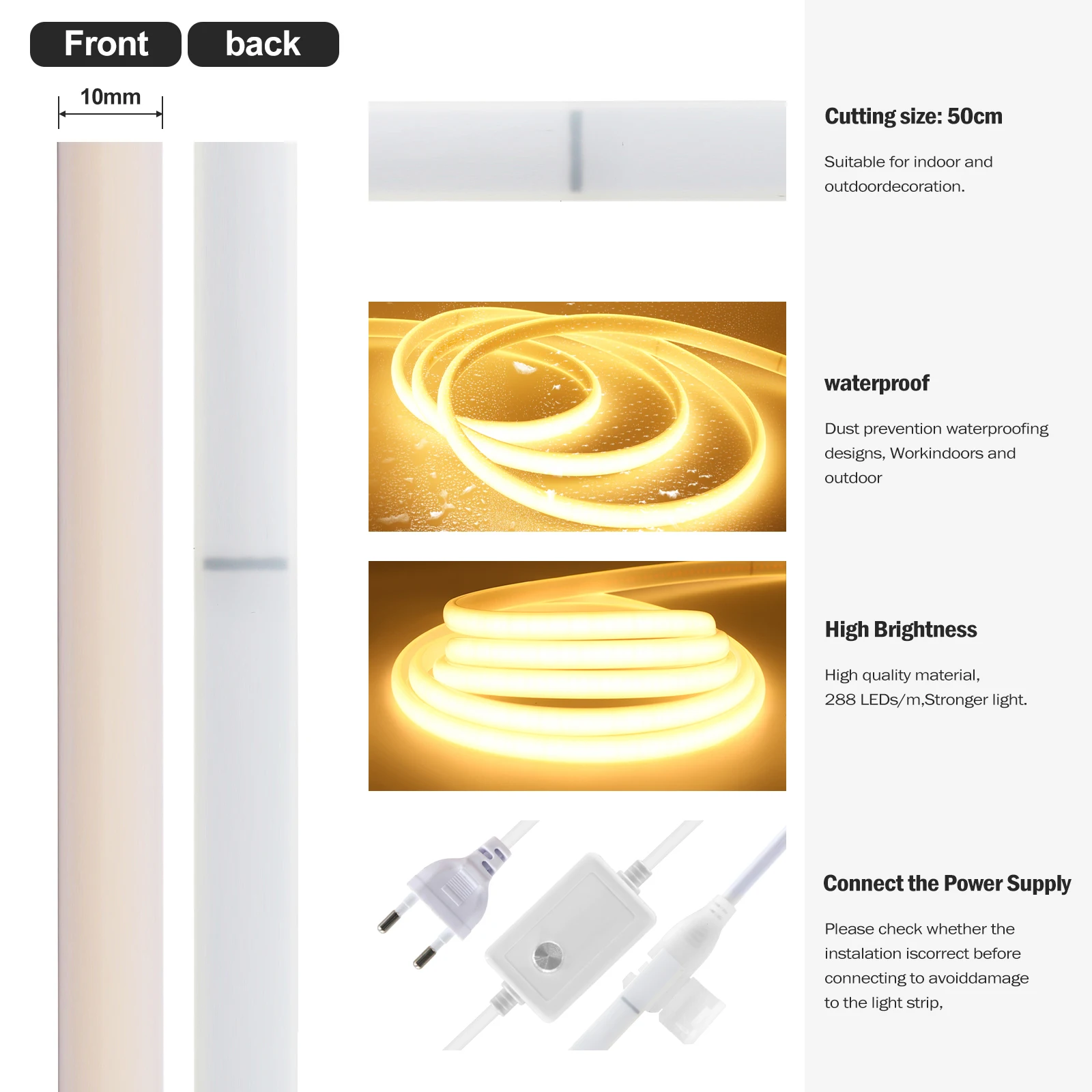 Dimensión exterior de la barra de luz COB: W10 mm x H5 mm