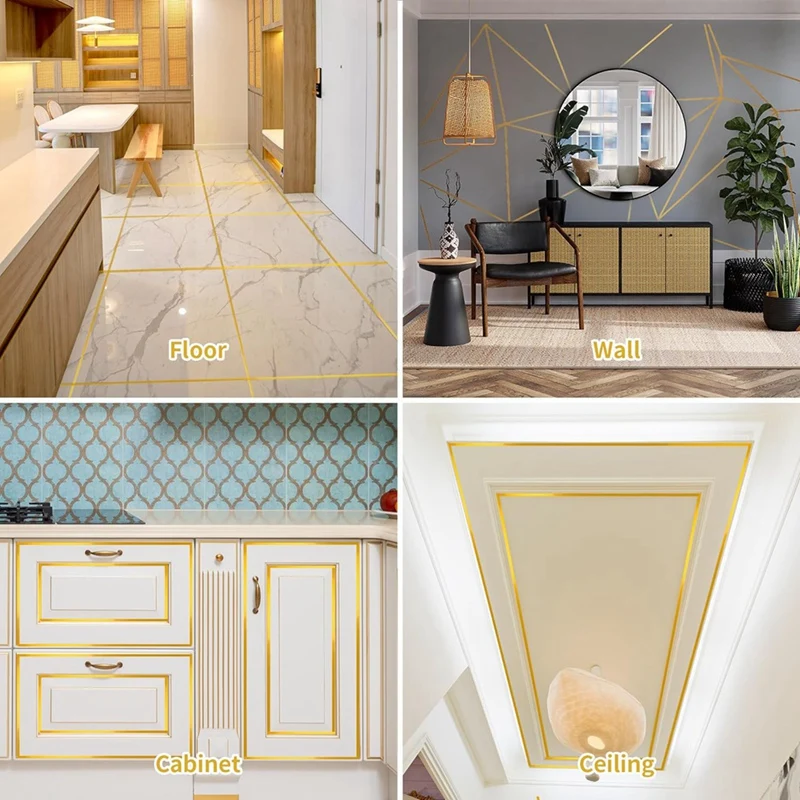 Versatile Applications: This Glossy gold washi tape are usually used for the dry, smooth and dust-freewall, floor, wardrobe, cabinet, door seam, tile space, suitable for a wide range of applications, Use it to enhance wall decor, adding a unique golden touch to your living space. It's also perfect for highlighting intricate details in arts and crafts, and it excels in graphic arts and gift box wrapping.