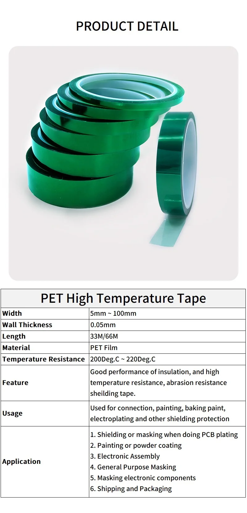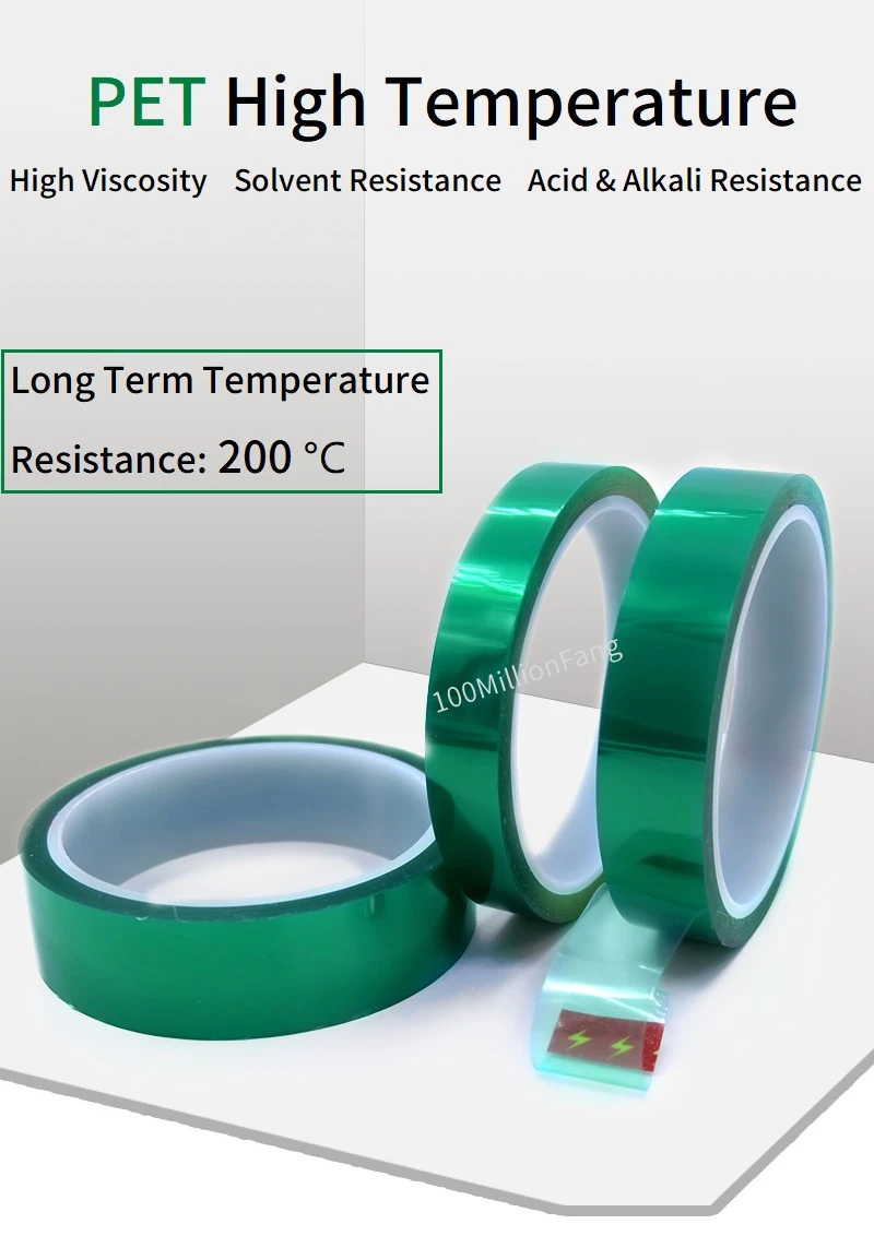 Parece cinta Kapton, pero en color verde. Aún no la he utilizado en el trabajo ni probado su resistencia al calor. La usaré para aislar ensamblajes.