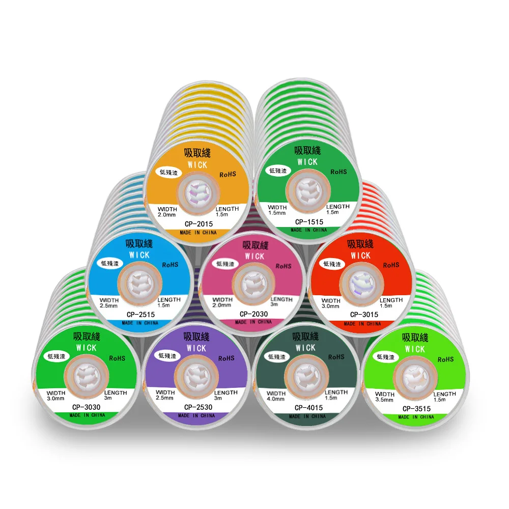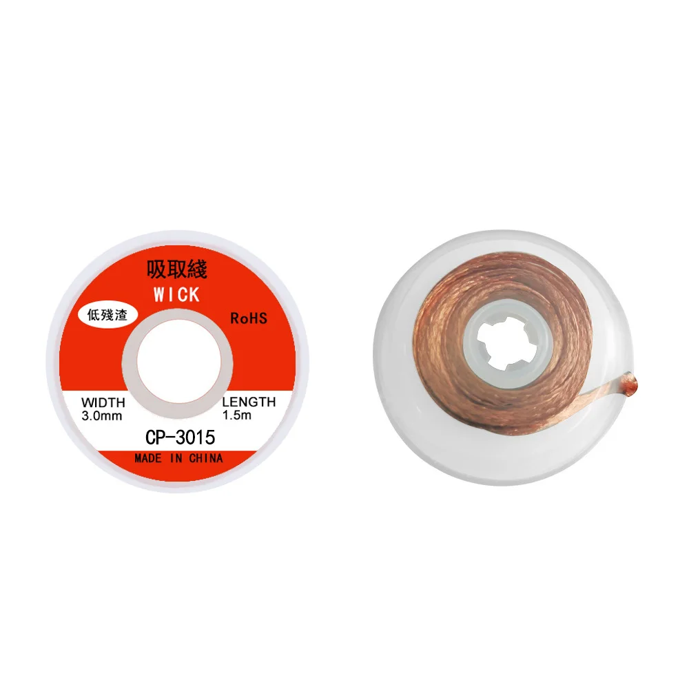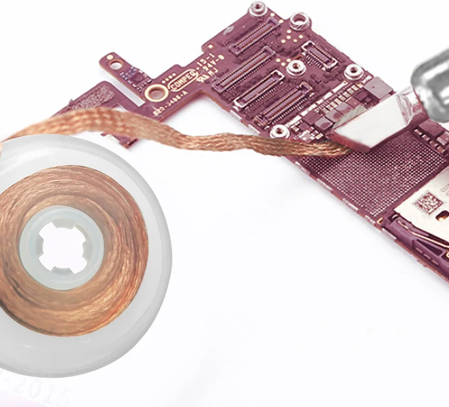 2. Cable de cobre puro libre de oxígeno -- sin flujo limpio para un uso fácil. La mecha de soldadura puede ayudar a limpiar algunos fundos de residuos y aumentar la velocidad de limpieza de la almohadilla PCB.