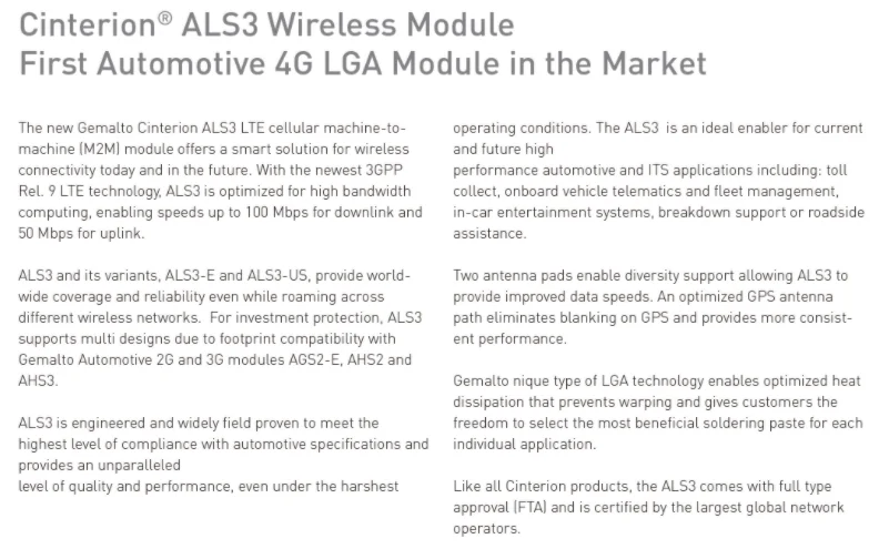 Cinterion-módulo inalámbrico para vehículo eléctrico, dispositivo para automóvil, 4G, LGA, ALS3-E, LTE, Cat3, Tesla, nuevo, ALS3 S30960-S3490-A401-1
