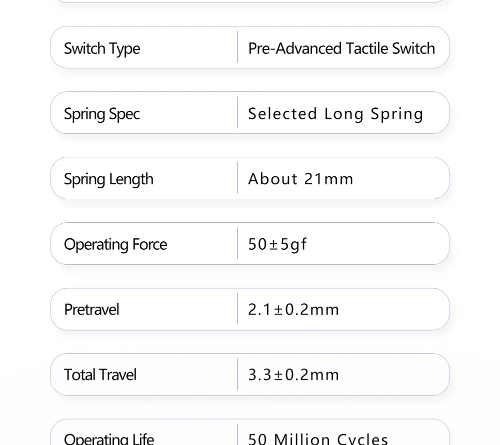 Comprar CIY Asura Switch Interruptor táctil pre avanzado 50g para teclado mecánico para juegos PC de resorte largo POK Nylon lubricado 50M Púrpura
