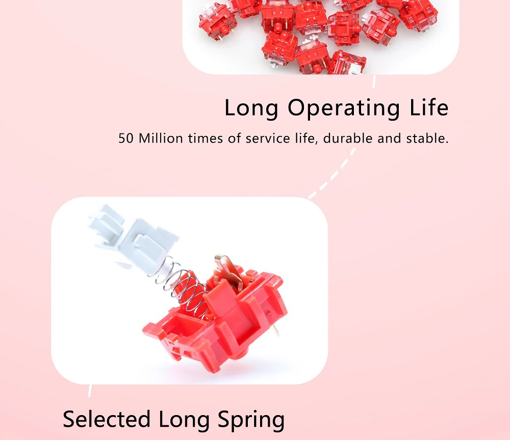 CIY-Interruptor de vástago lineal rojo para teclado mecánico, dispositivo mx de 45g, de fábrica, Lubed PC, nailon POK, 50m
