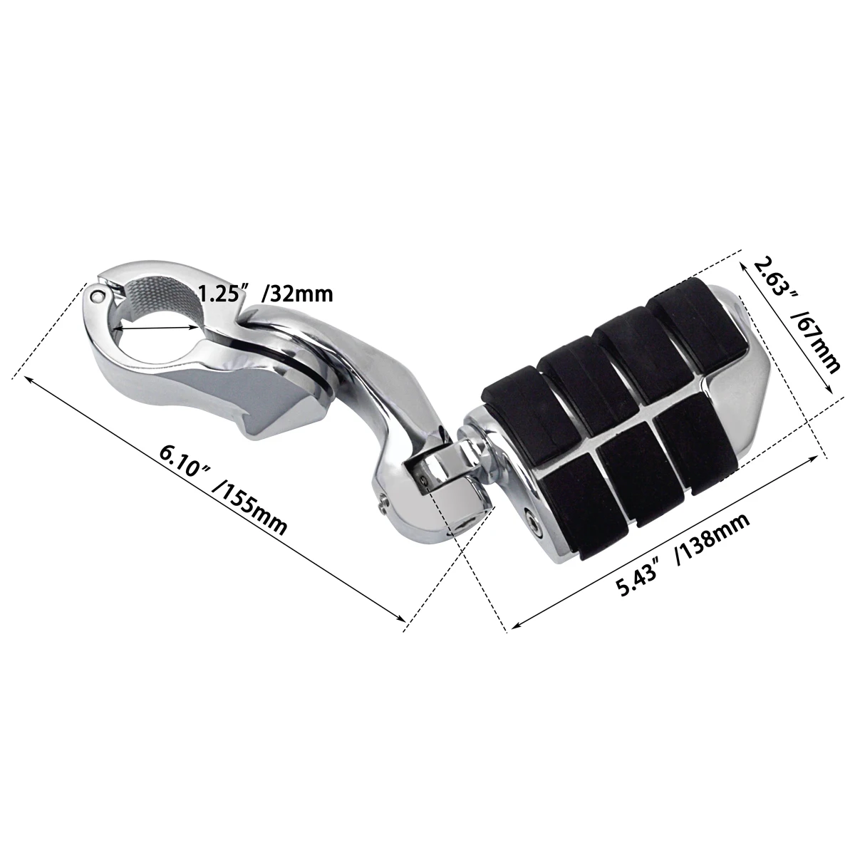 ^ Específico del vehículo: las clavijas de carretera de la motocicleta son compatibles con Road Glide, Electra Glide, Road King, Street Glide, Sportster, Softail y Dyna con 1 1,25 " (32mm) barra protectora del motor. (Asegúrese de que la barra de protección del motor sea precisa, por lo que la clavija del pie se romperá si las barras del motor no son adecuadas).