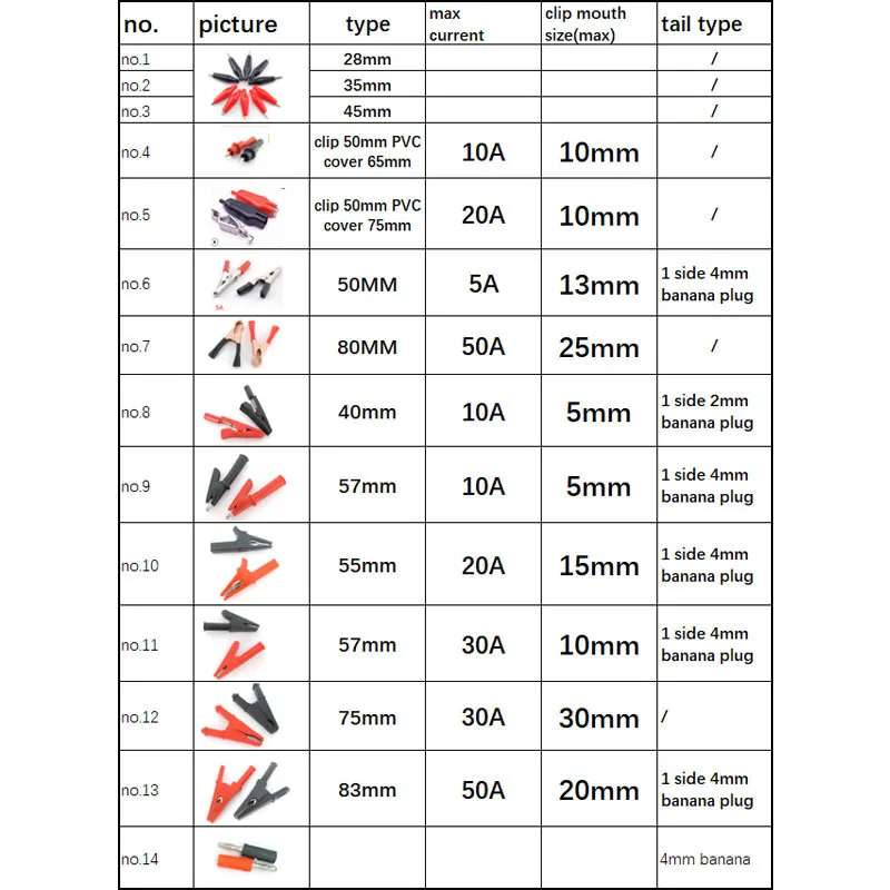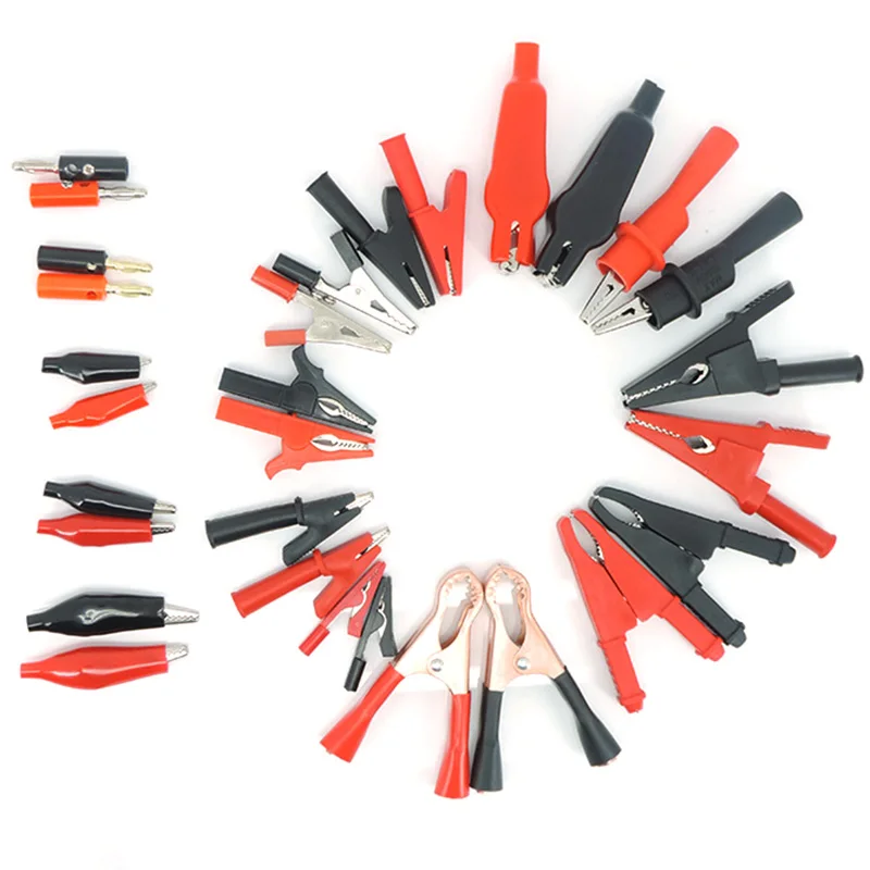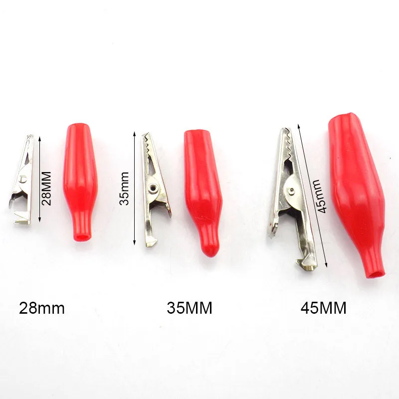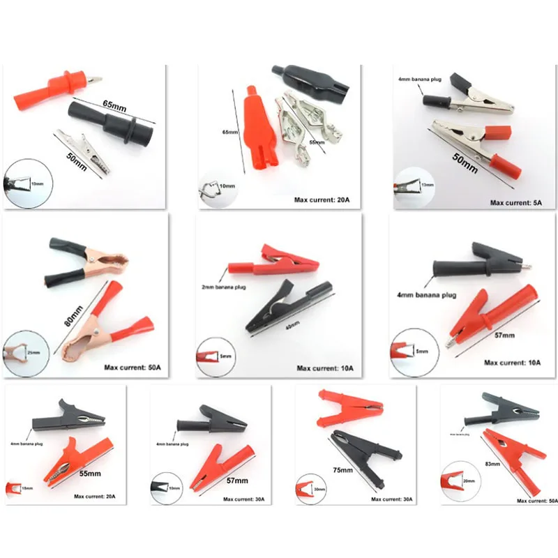 Comprar Clip de cocodrilo eléctrico DIY, mango completamente aislado, abrazadera de prueba de batería, cable de plomo, conector de sonda, conector banana de 4mm