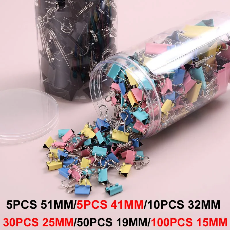 Comprar Clip de cola larga de 51MM/41MM/32MM/25MM/19MM, 200 piezas, clips de papelería para estudiantes, carpeta de archivos de Metal para oficina