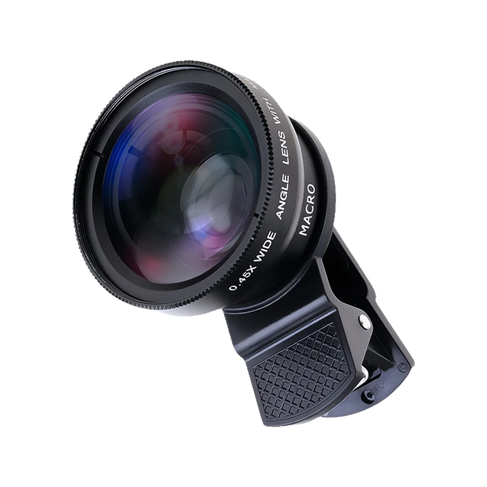 Lente Universal 2 en 1 con Clip de 37mm para teléfono móvil, lente profesional de 0,45X 49Uv súper gran angular + Macro HD para iPhone y Android