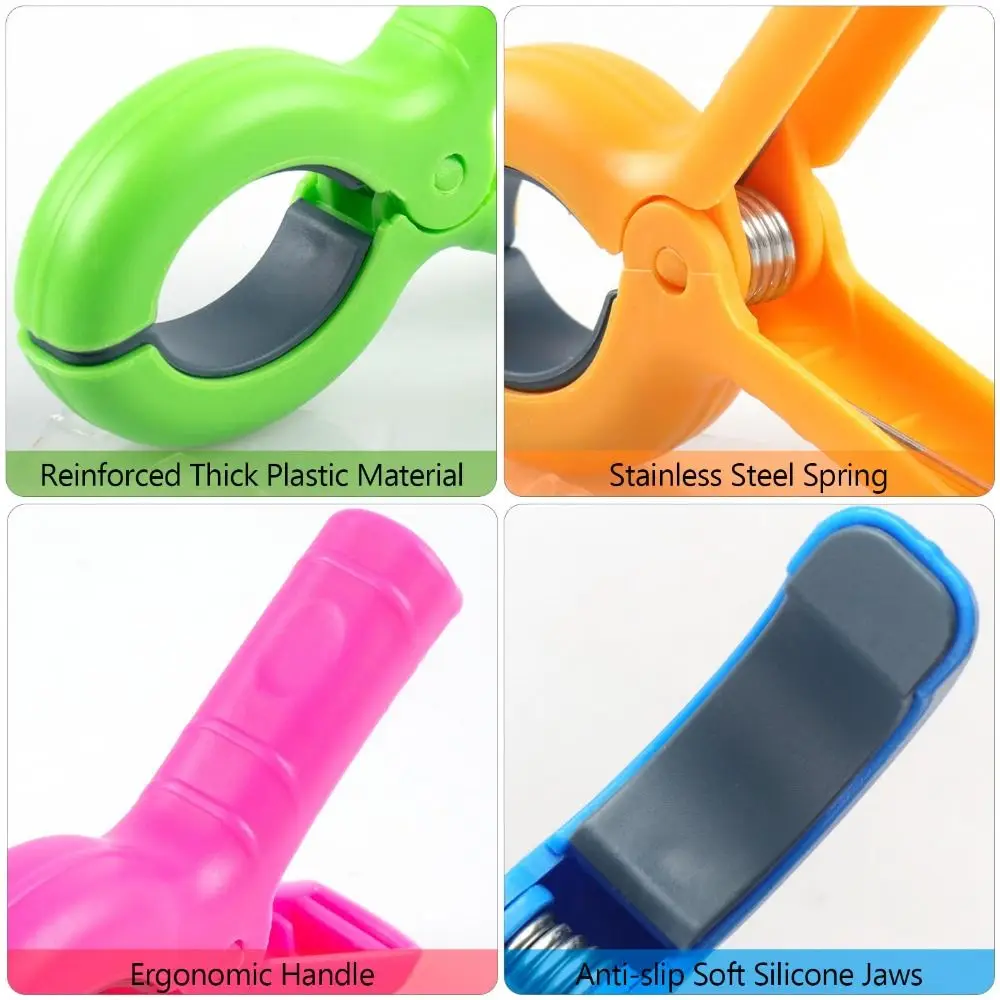 1.Tamaño gigante: que miden 5,1 pulgadas, estos clips son perfectos para asegurar toallas de playa grandes a las sillas, asegurando que permanezcan en su lugar incluso en días ventosos.