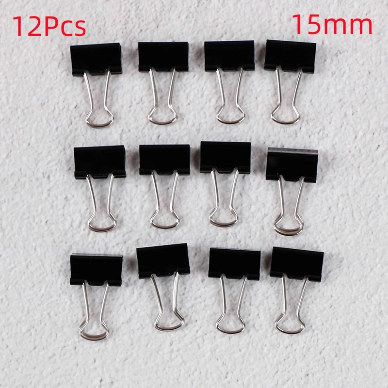 Comprar Clips de Metal negro para archivador, Clip de papel para fotos, papelería, suministros de oficina, Kantoor, maletines escolares, documentos, 15mm, 10/12 piezas