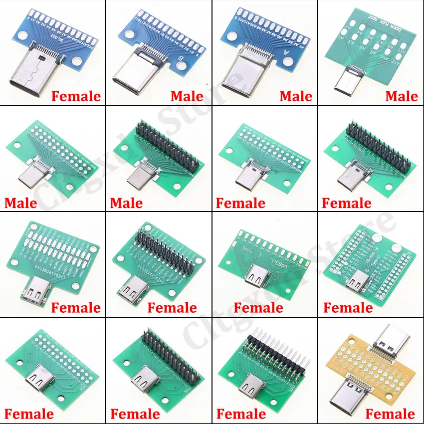 Comprar Cltgxdd 1 pieza tipo C macho hembra enchufe USB 3,1 adaptador de placa PCB de prueba tipo C 24P conector de 2,54mm para Cable de línea de datos