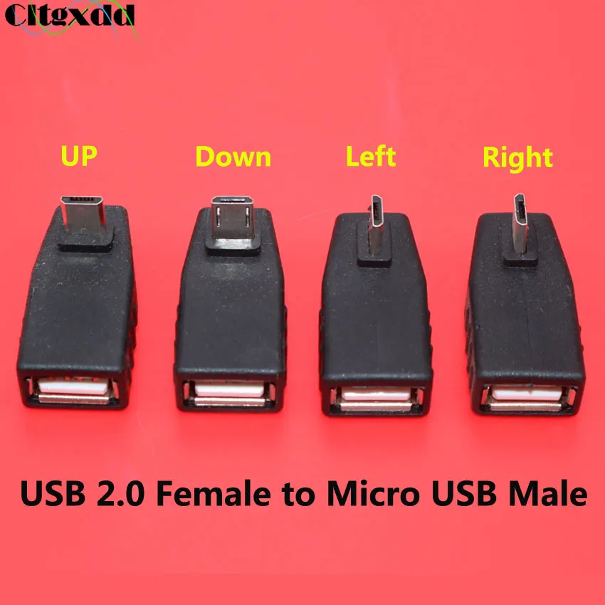 Comprar Cltgxdd 1 piezas USB 2,0 A hembra A Micro USB 5 Pin B macho enchufe OTG adaptador de Host conector izquierda/derecha/arriba/abajo ángulo negro